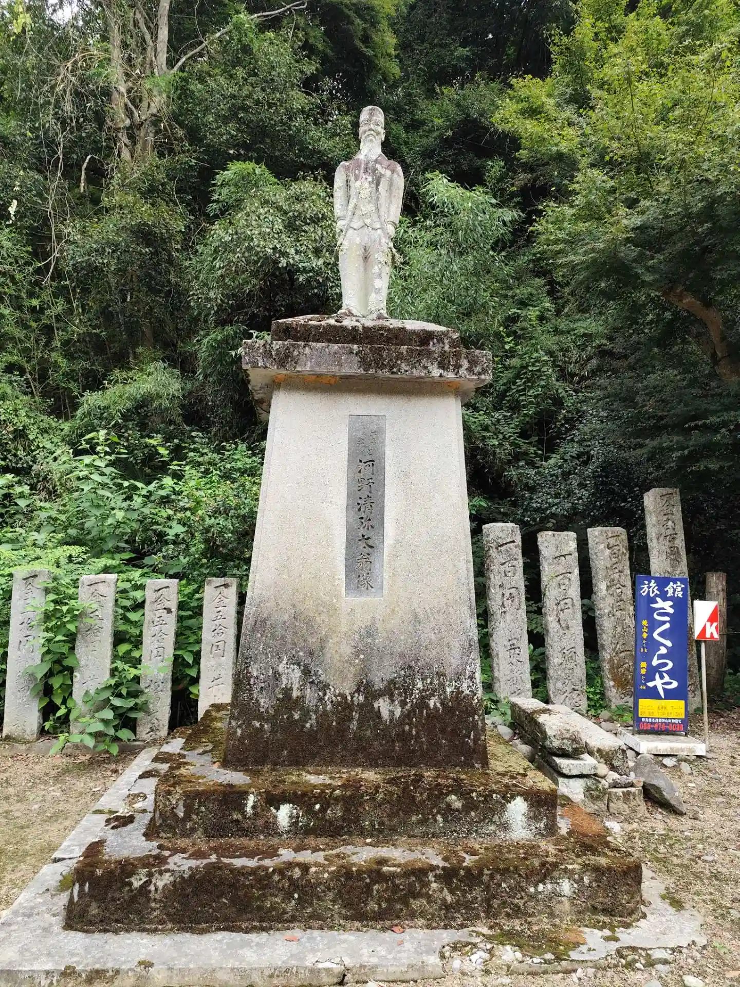 山門をくぐって参道を直進すると左側にある<河野清弥太翁像>。