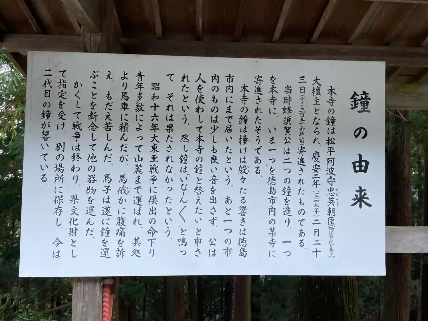 鐘楼由緒書