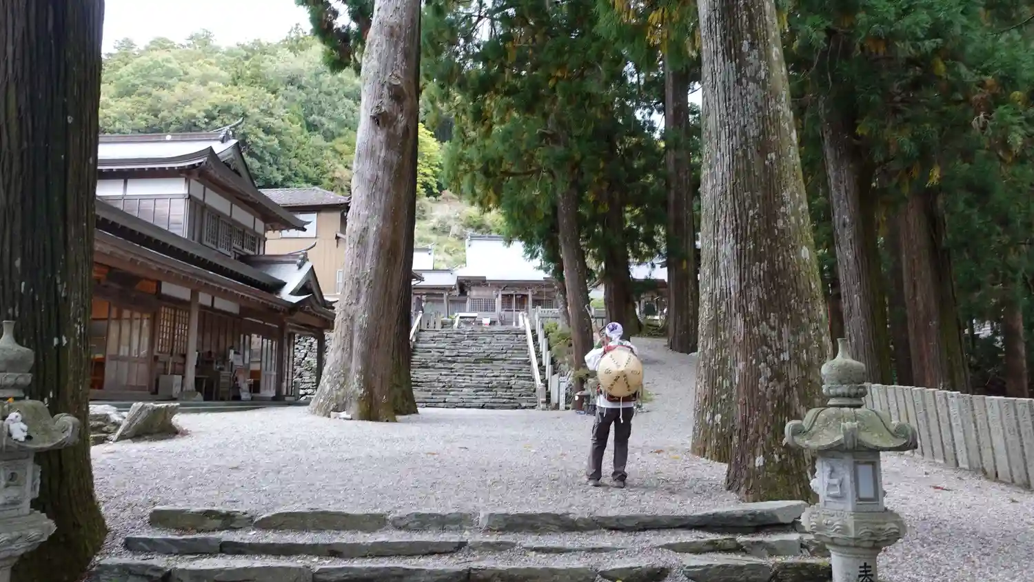 樹齢数百年の杉の巨木が人々を見守っている。