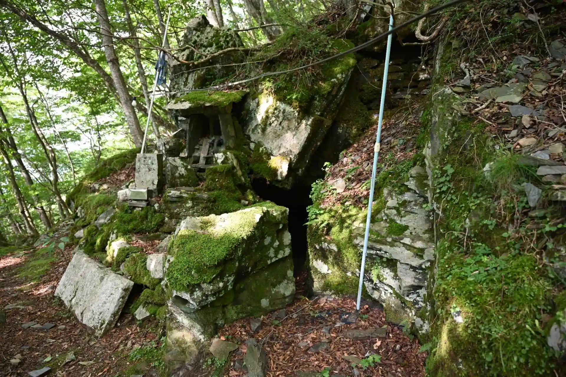 近くに一等三角点や高越山山頂、謎の洞窟(?)があります。