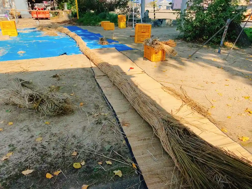 わらを編んで作ってくれています