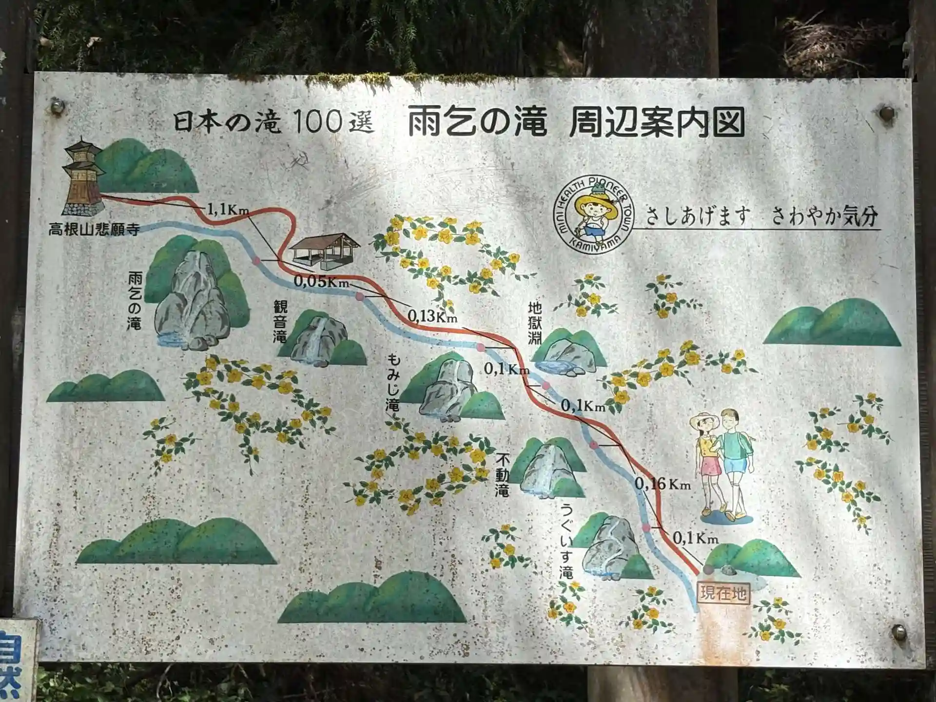 【雨乞の滝まで100m】