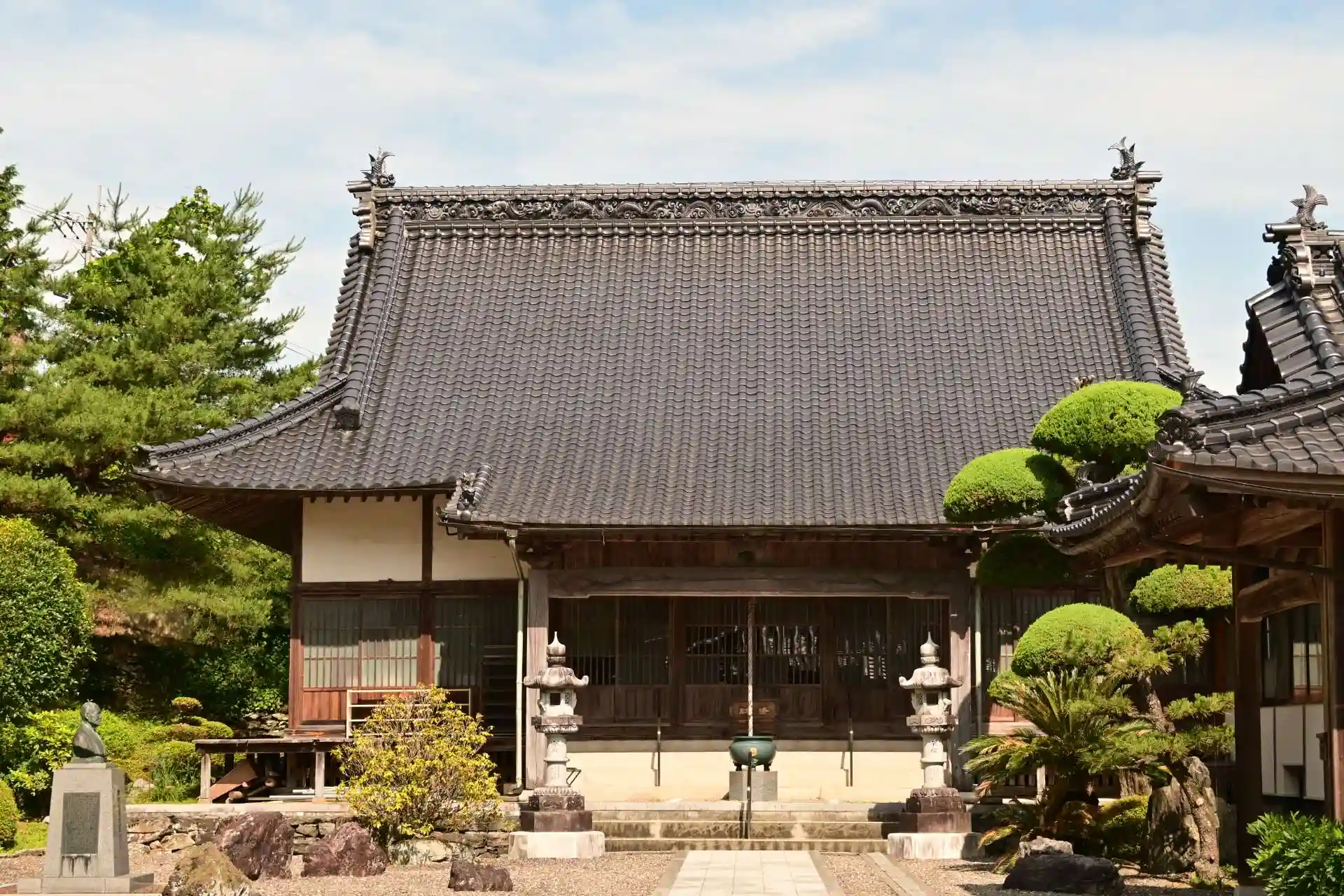 西福寺は、徳島県美馬郡つるぎ町、家賀(けか)集落に位置します。古代、つるぎ町貞光吉良には、「忌部神社(現:御所神社)」を中心に東に東福寺、西に西福寺が建立され、東西を守護していました。西福寺は、奈良時代の726(神亀3)年に「忌部神社」の西寺として創建されました。その後、度々の火災で退山、1940(昭和15)年に麻殖氏(おえし)ゆかりの家賀道上(けかみちうえ)に、堂宇を建築し現在にいたっています。