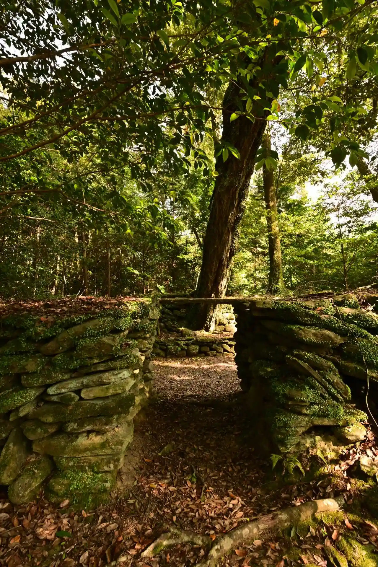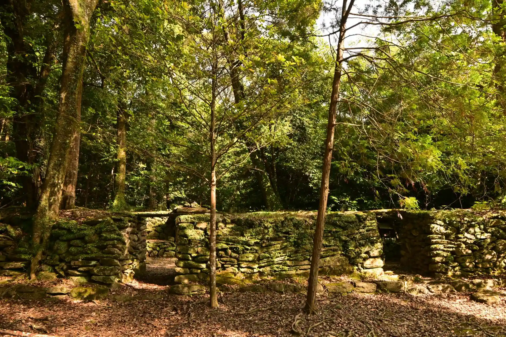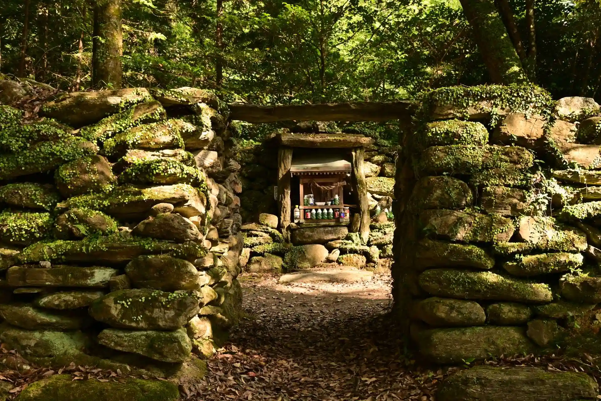 神社は、造りが変わっており、磐境とされる長方形の石垣に囲まれ、3つの入口、5つの祠が配置されています。この構造が古代ユダヤの祭祀(さいし)場と同じであるとして、「日ユ同祖論」の根拠としてとりあげられているようです。