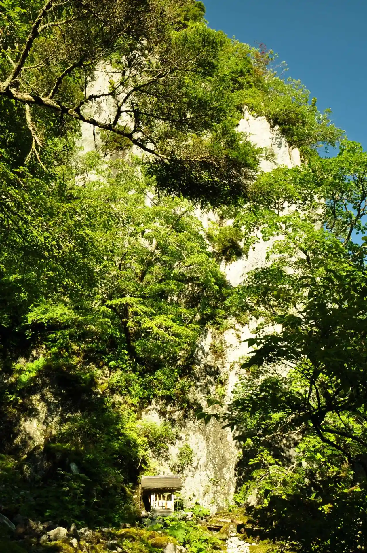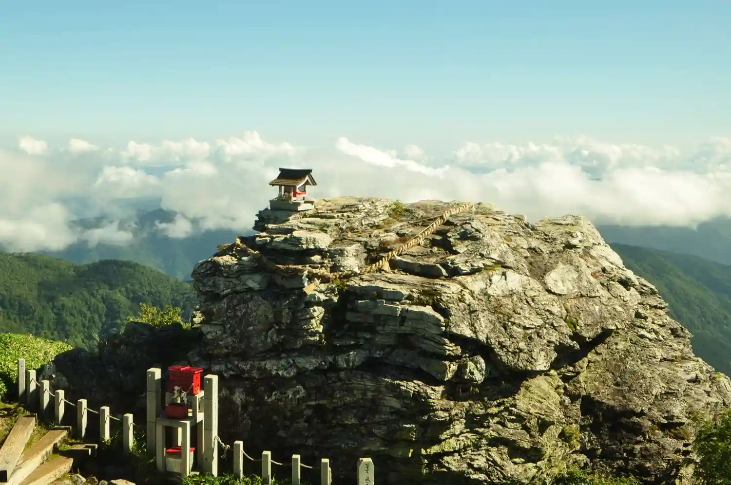 山頂に最も近い標高1,930mのところにある神社。3mもの巨大な磐座(いわくら)は、安徳天皇の宝剣を納めた岩という伝説がある。