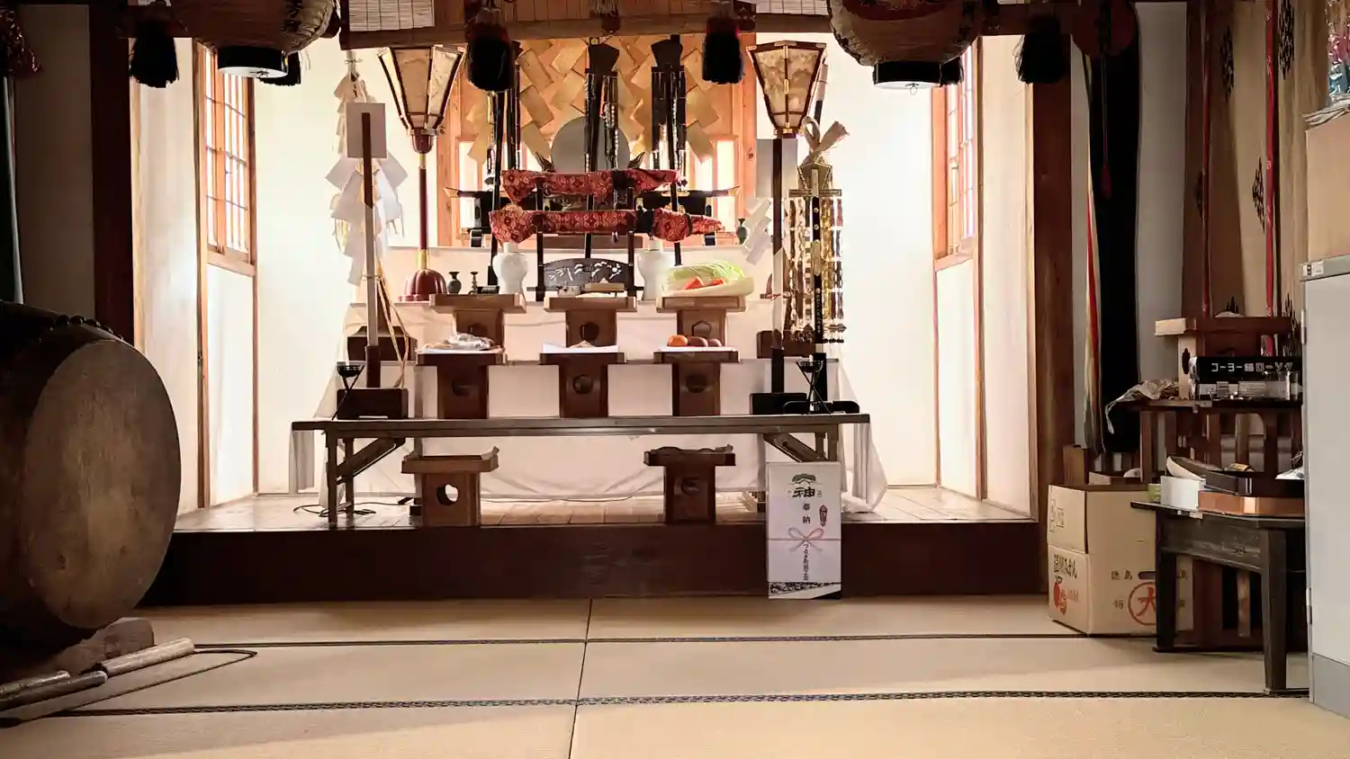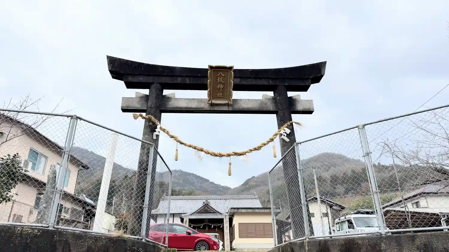 この日2社目の八坂神社です、鳥居を抜けると駐車場になっています、初詣の準備は出来ているのかなと思い…