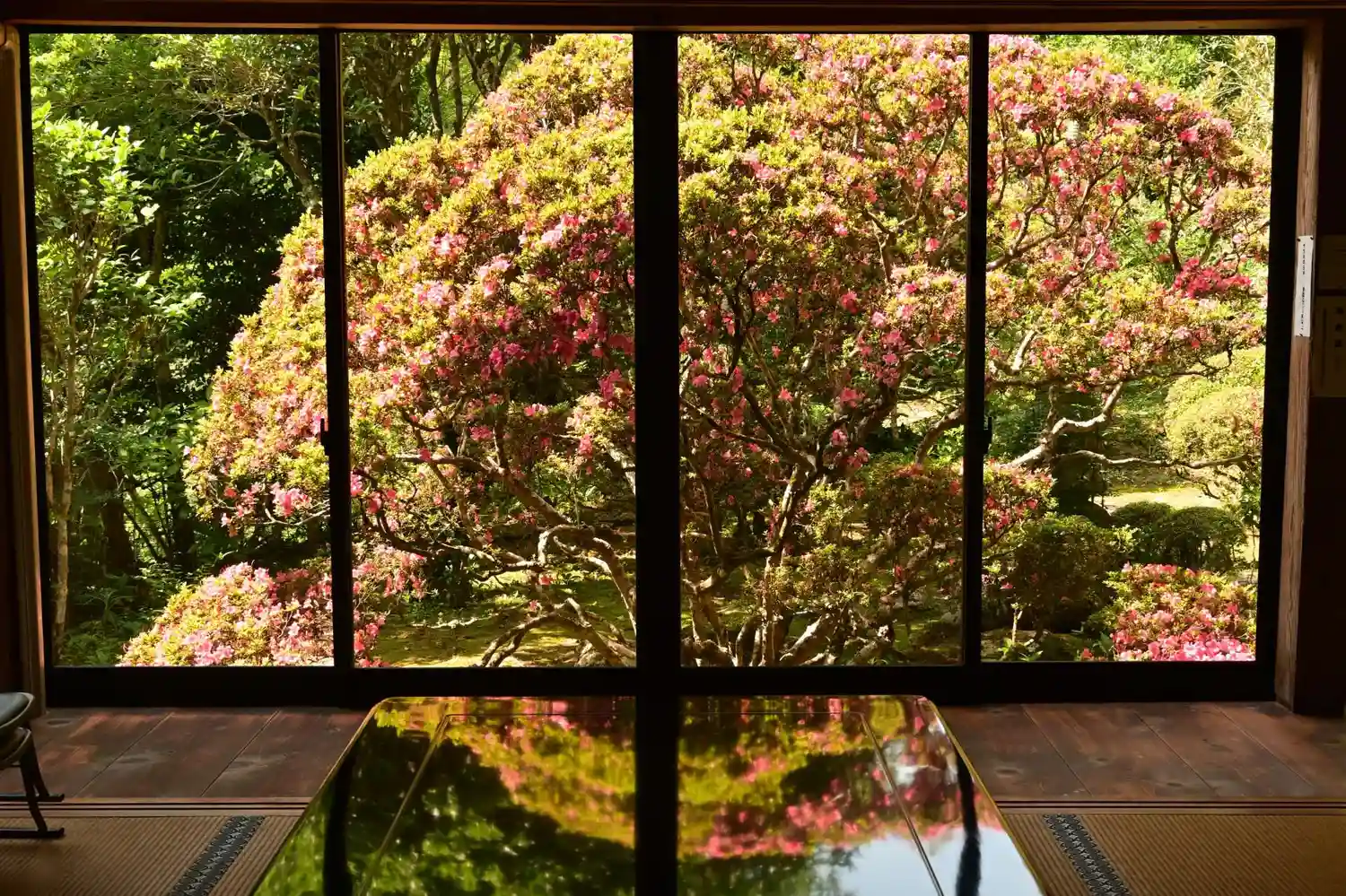 【本堂内から見る「さつき」の庭】