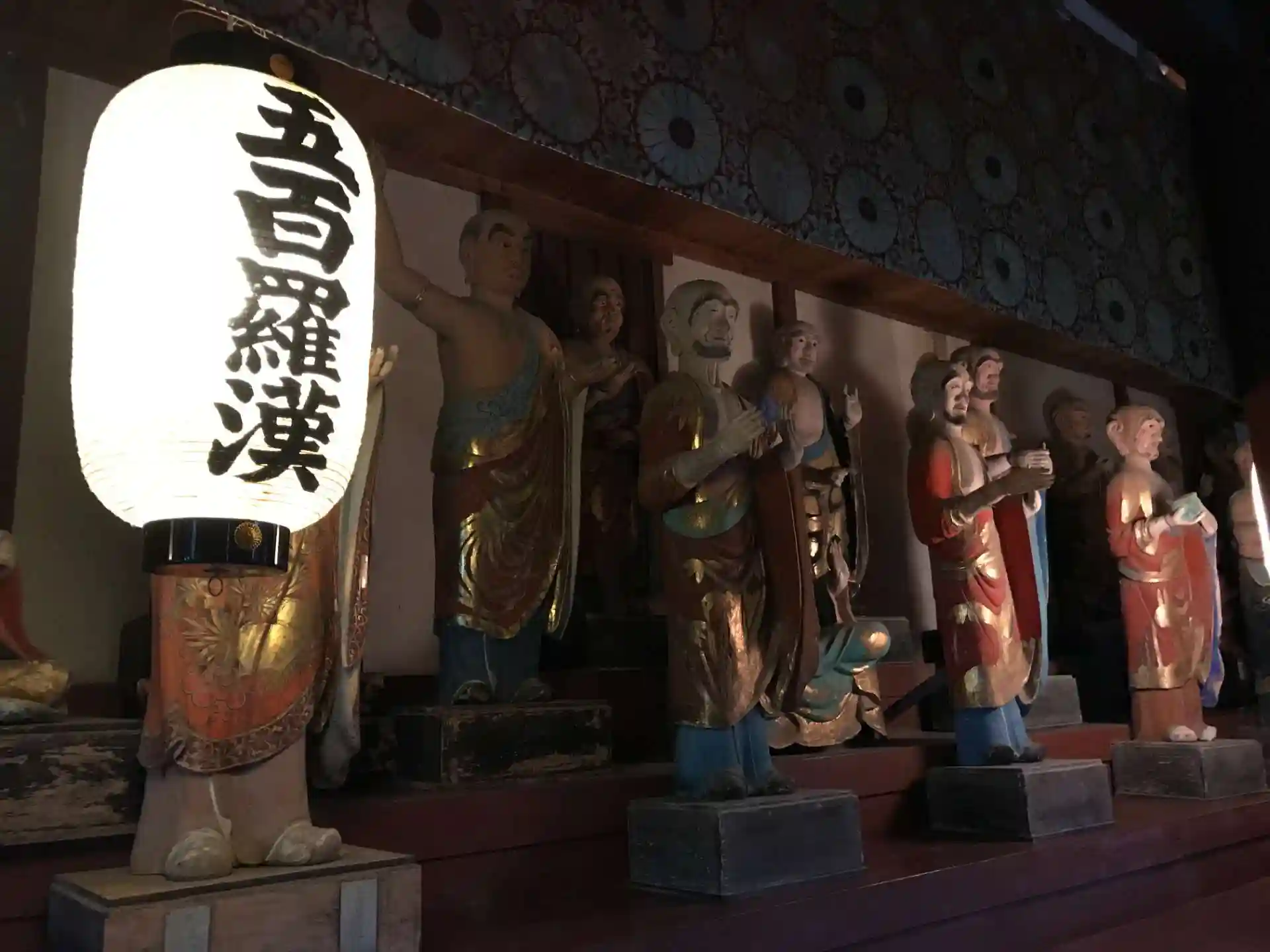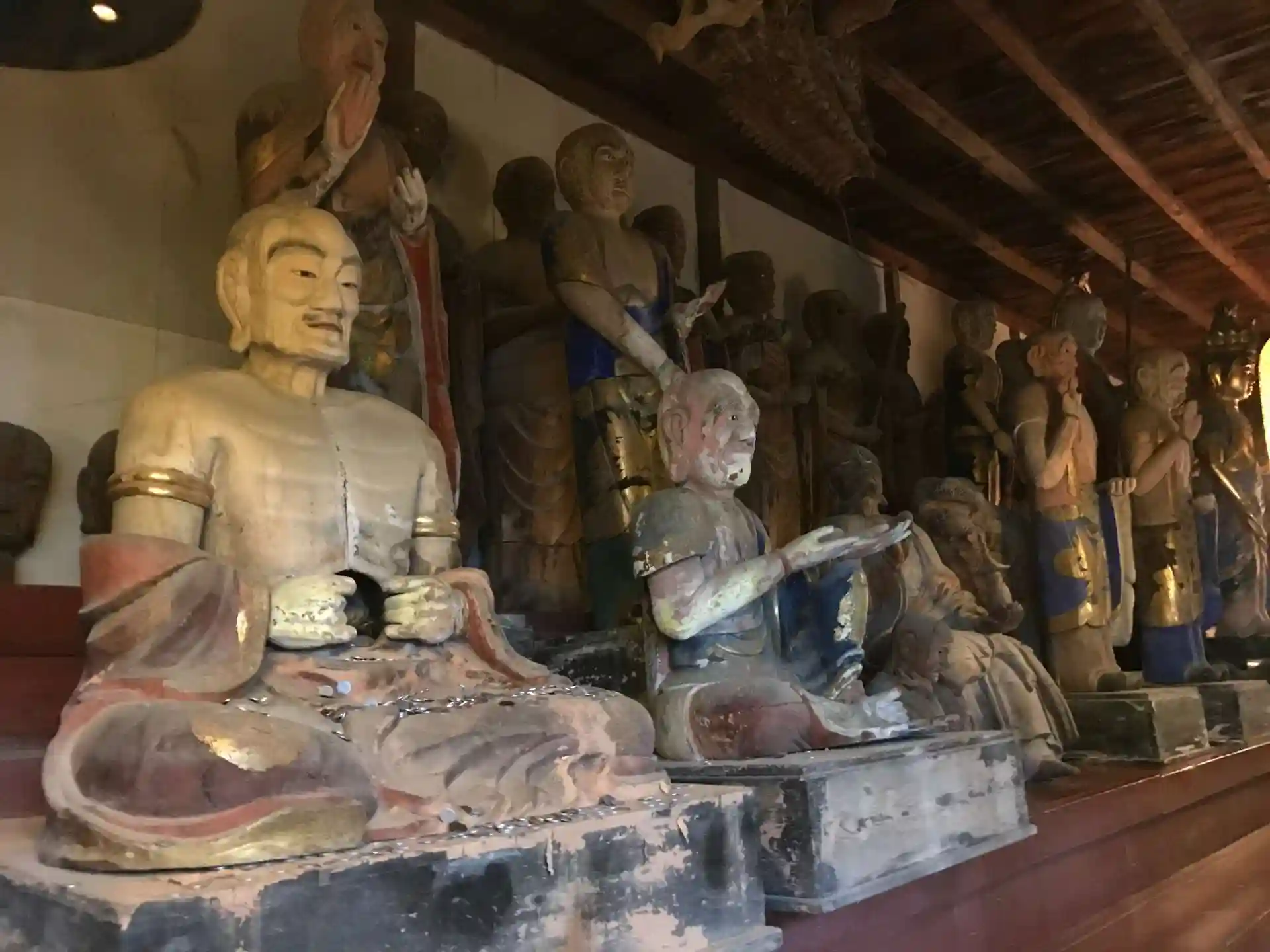 本堂奥から右手方向に石段を登った先にあるのが奥之院の羅漢堂。釈迦堂・弥勒堂・大師堂が回廊でつながっており、中には五百羅漢像が安置されている。1915年の火災で一部焼失し、現在は200体ほどが残されている。