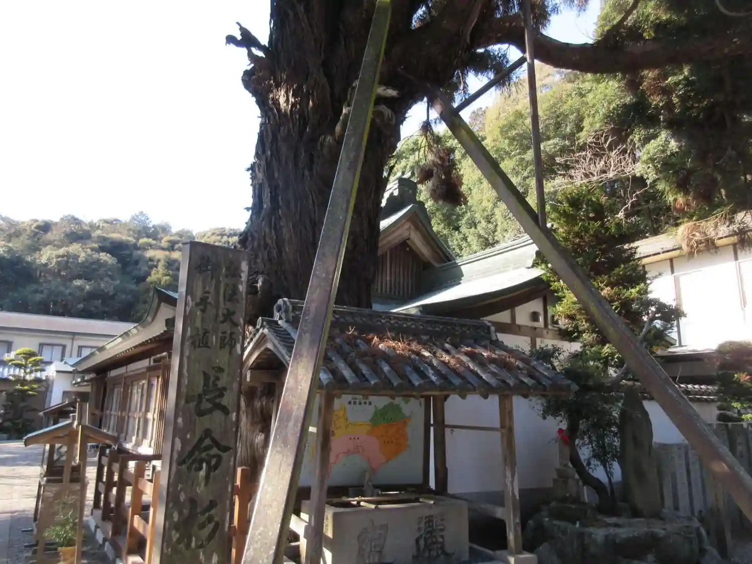 弘法大師が自ら植えたといわれる長命杉が立派にそ…