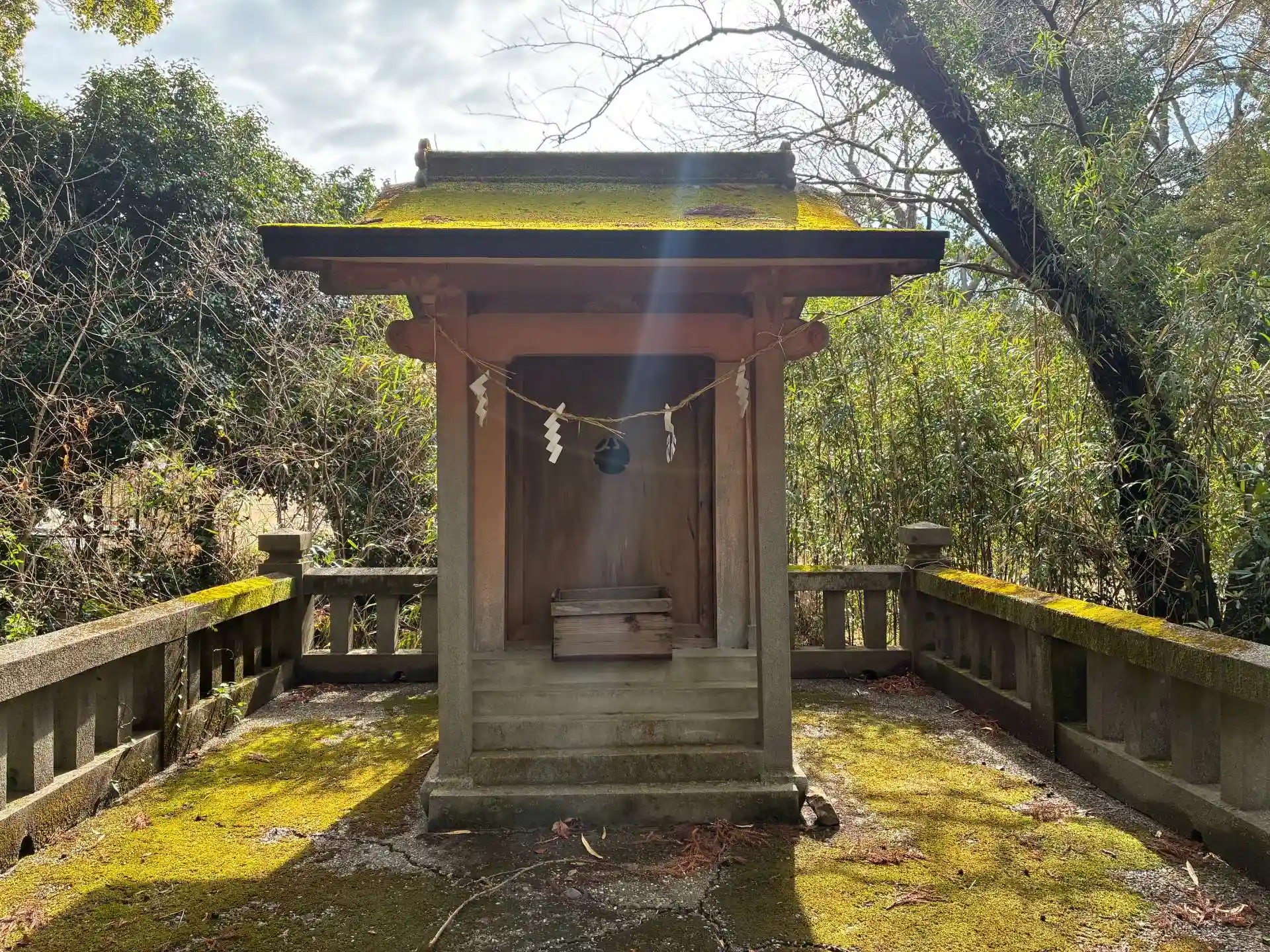 折野八幡神社を参拝した際にお見かけしたので立ち寄りました。折野八幡神社の目の前にあるのでひょっとしたら境内社かも?折野八幡神社のHPを見たらやはりそうでしたね。苔むしてていい雰囲気の神社でした。