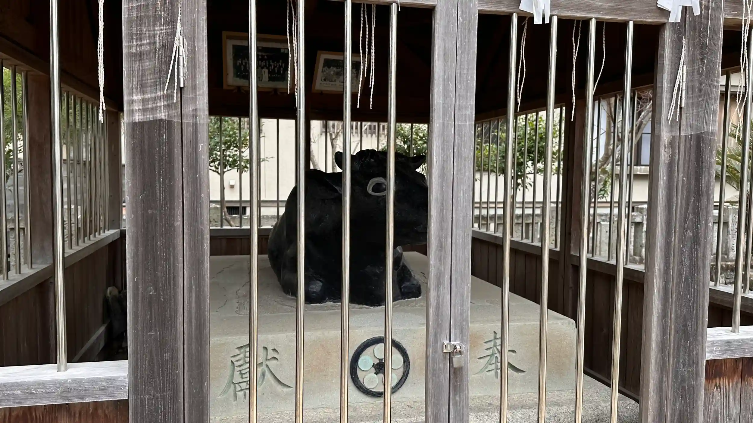 ここにもありました「蘇鉄」の木、撫で牛も居ますが手が届きません! 町指定無形民俗文化財「北村天満神社奉納獅子舞」があるそうです、秋例祭と元旦祭の年2回、五穀豊穣と世の太平を祈願して奉納する。文化年間(1804~1813)に、社殿造営の際に讃岐国から導入されたのが始まりとされる 境内案内板より
