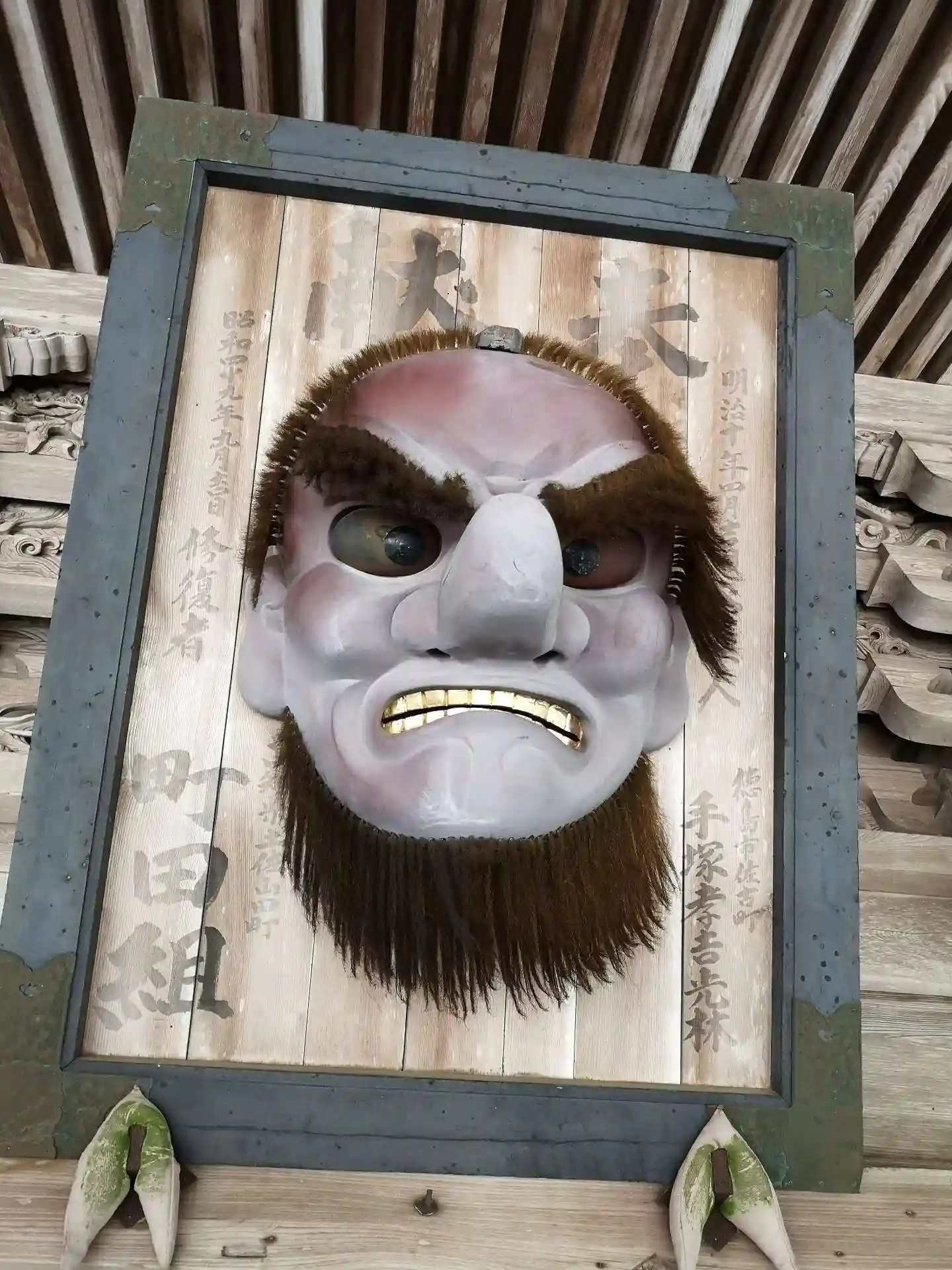 本殿に掲げられている迫力のあるカラス天狗(?)その2