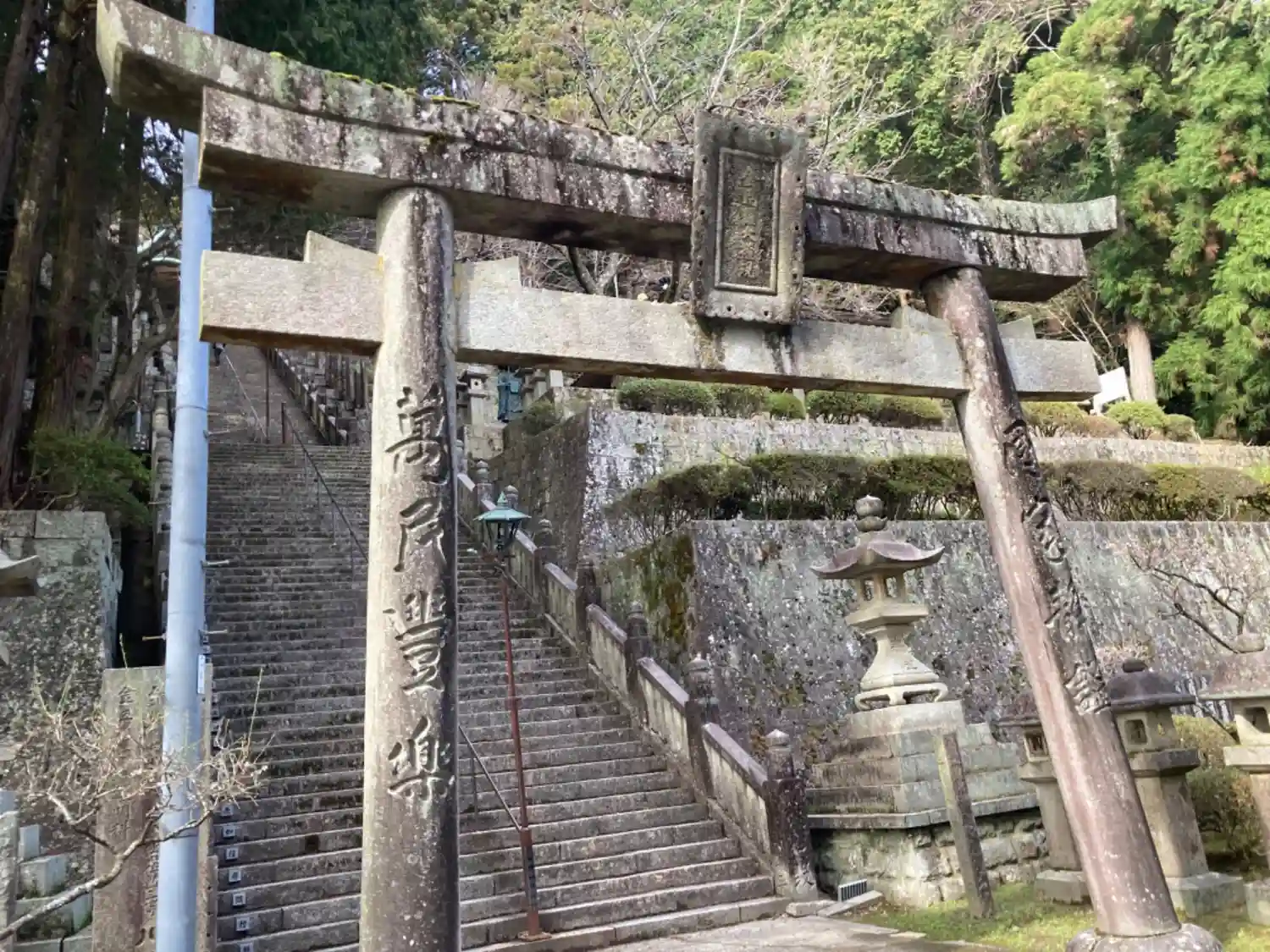 四国遍路途中番外札所らしいので行きました。ロープウェイで行けます。神馬に箸とか書いてます。納経所は…