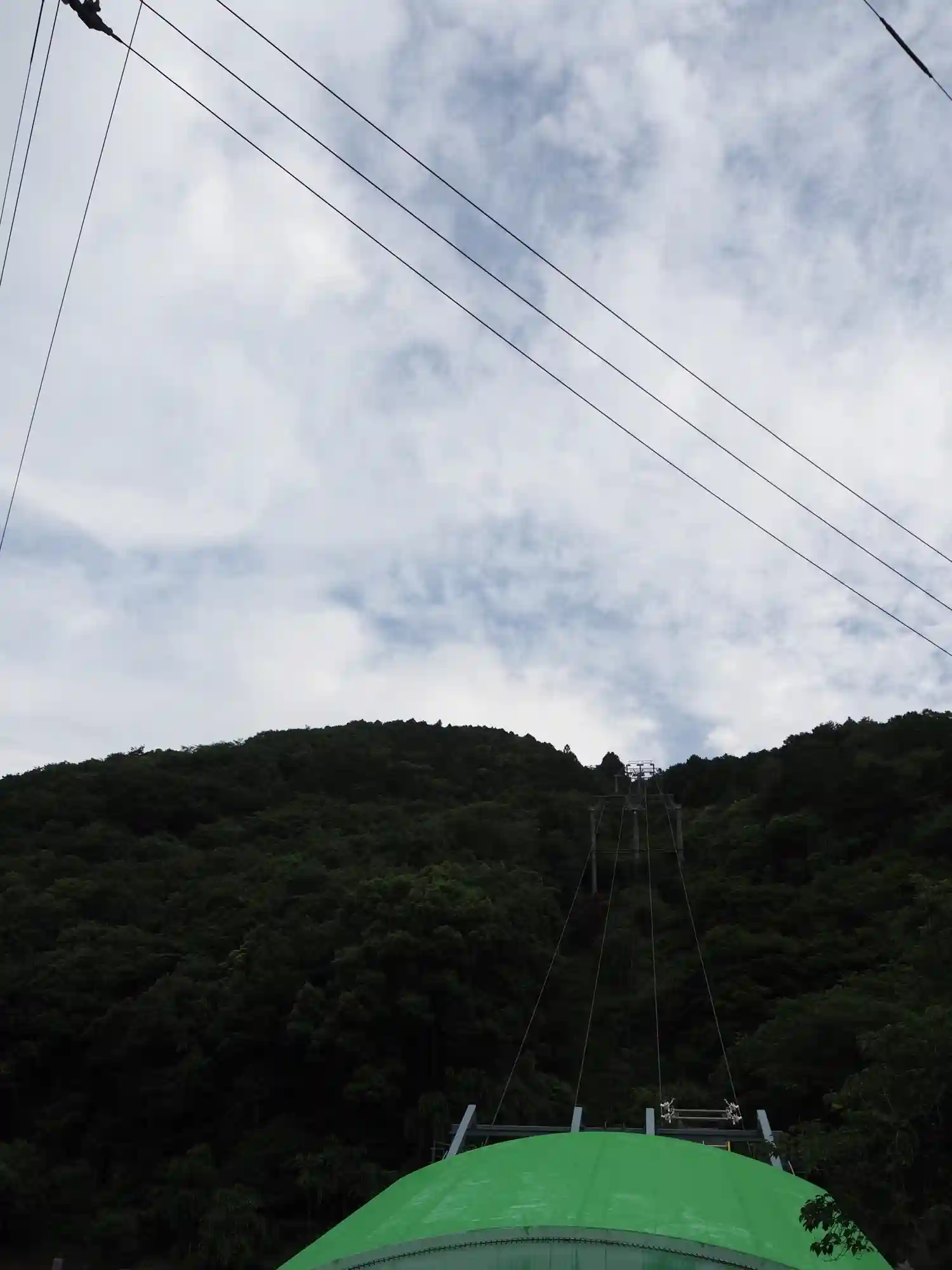 ロープウェイのワイヤーが見えます