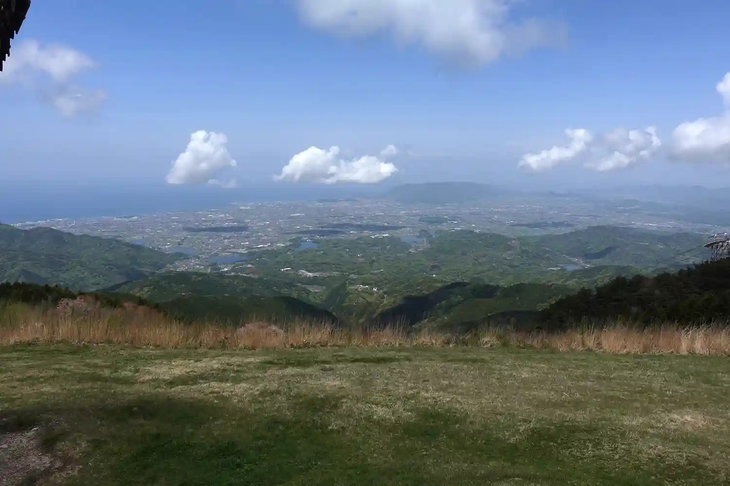 ロープウェイ駅から海が見えます