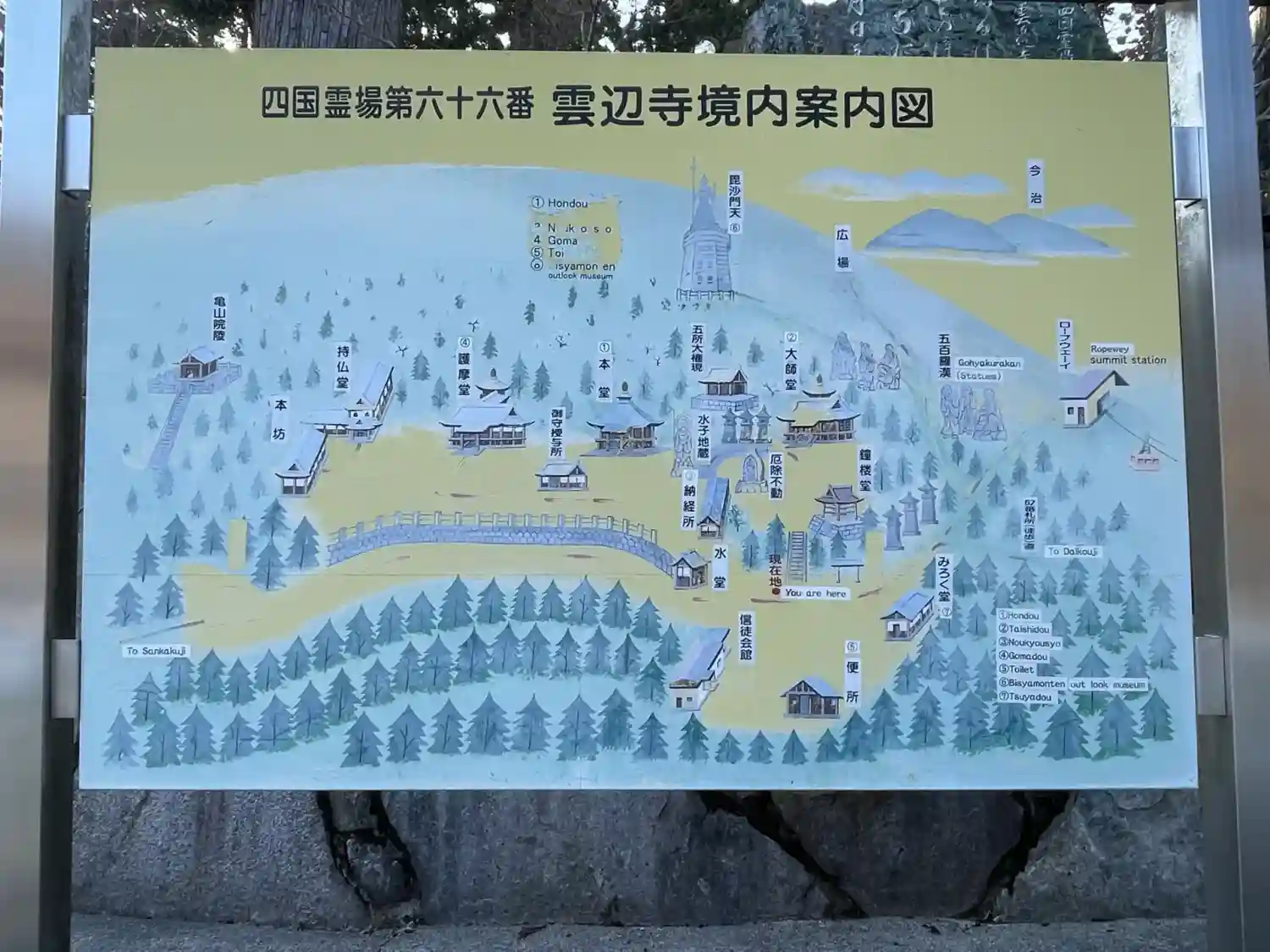 こちらも山頂の寺院。雲辺寺山山頂にありロ…