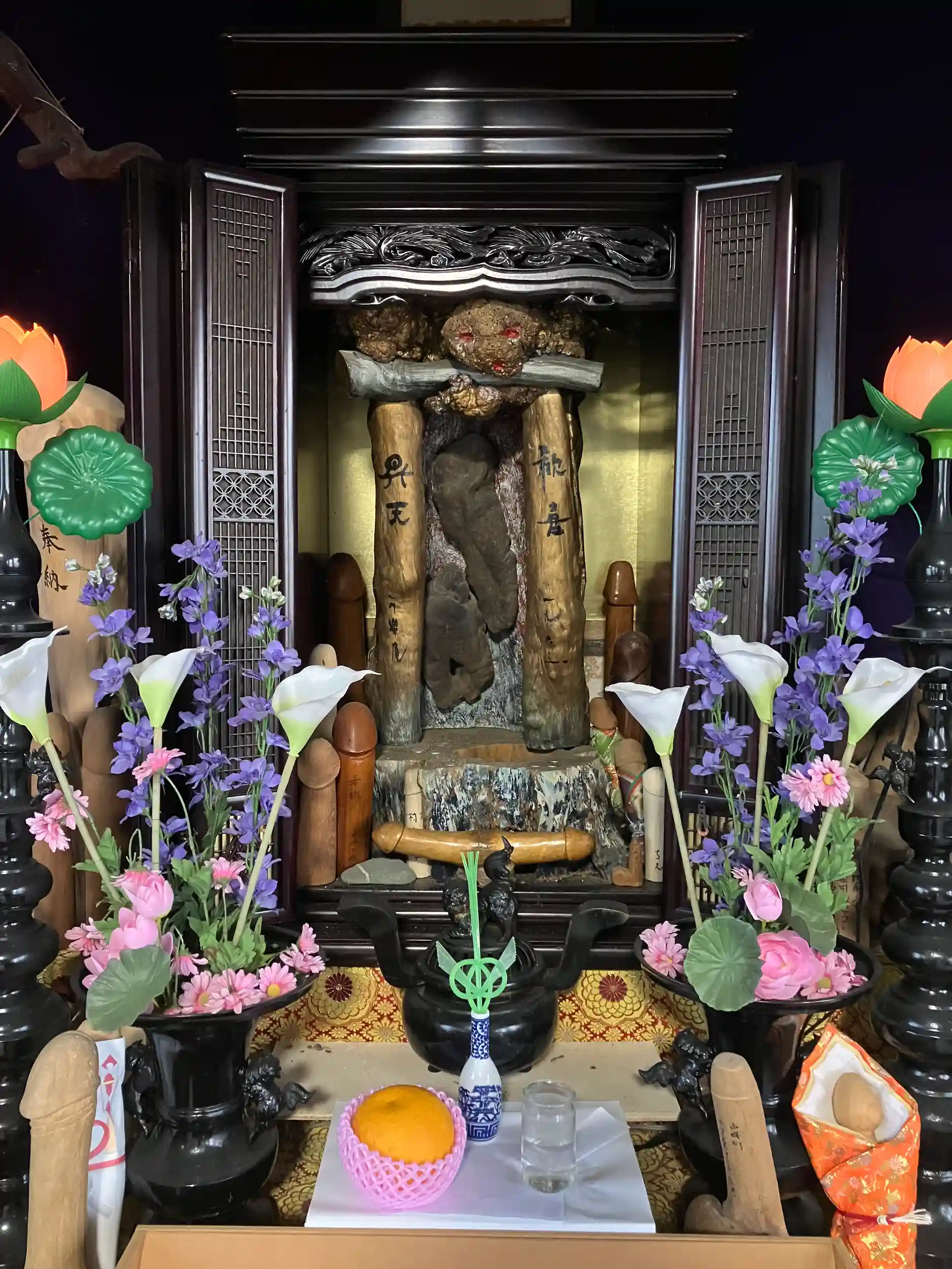 お花大権現を祀る。1811年旅の僧・善達がお花権現の霊を捧持して巡礼しており、この地に観音堂を建てて祀ったという。