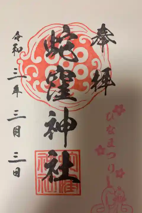 令和元年5月1日より、御大典を記念し、また、地域の発展を祈念して、神社名の問い合わせの多い別称「蛇窪神社」を通称表記に格上げすることになりました。