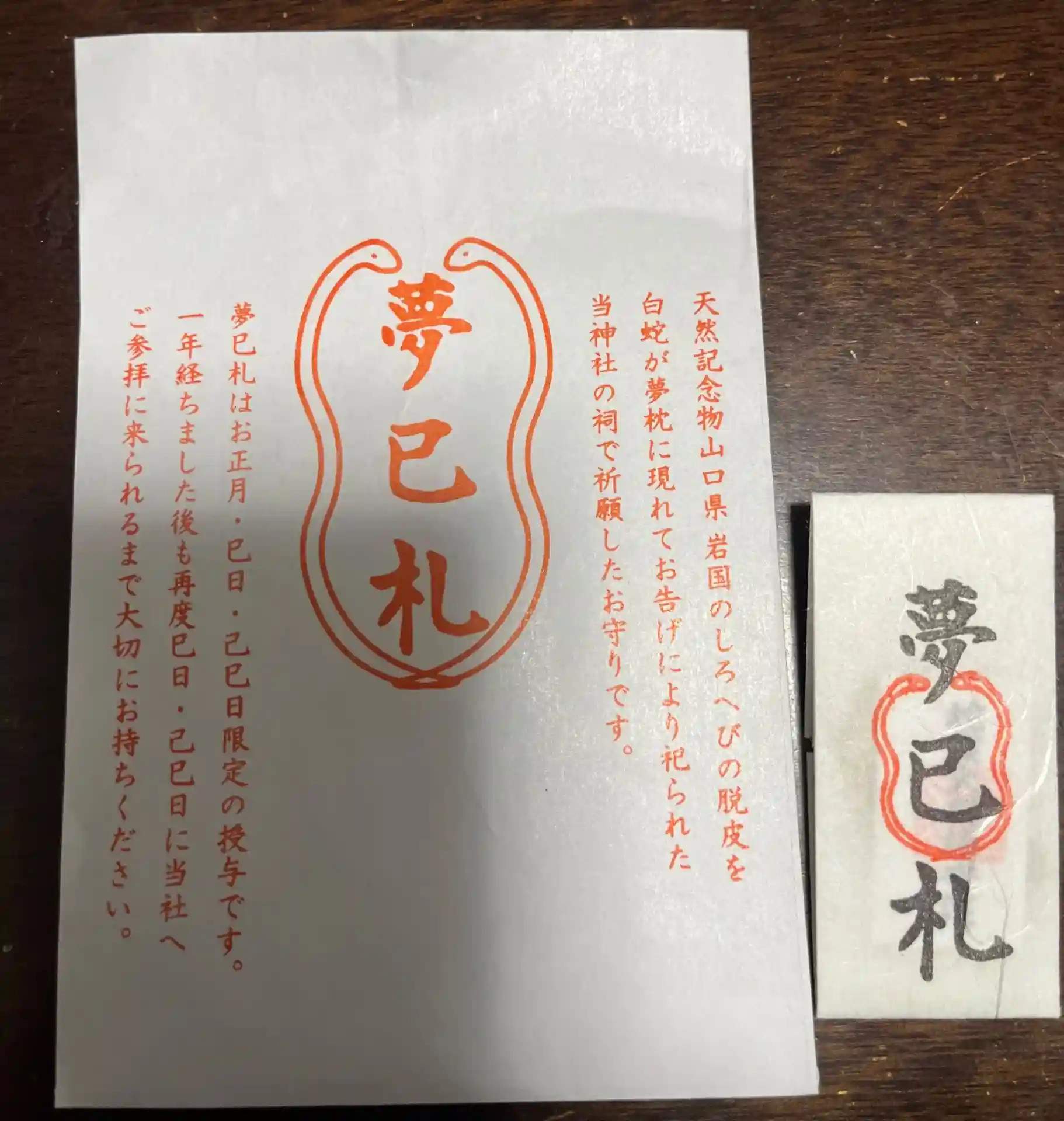 他に白蛇の置物と夢巳札を購入しました。