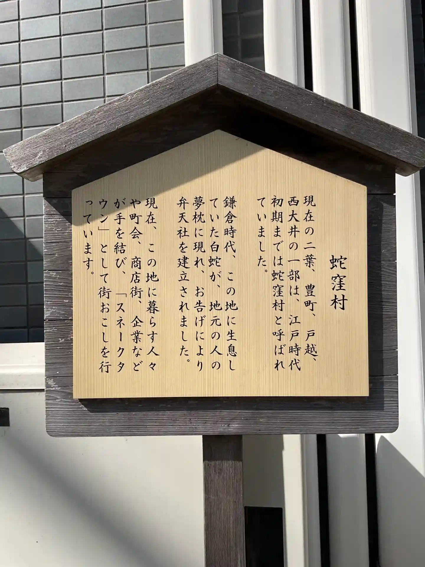 蛇窪村だったという立看板