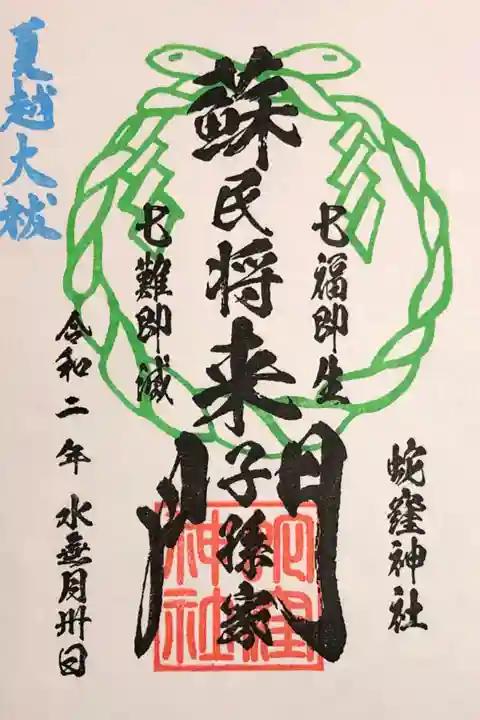 巳の日です。雨の中の参拝です。ご朱印4種(大鳥居建立記念・弁財天・蛇窪大明神・夏越大祓)とご朱印帳を拝受。蛇窪大明神ご朱印には右上に巳の日限定のシルバー蛇さんを書き入れて頂けました。茅の輪もくぐり厄祓い、無病息災を祈願。残念なことに、現在白蛇さまの祠と撫で白蛇さまは弁天社改修工事のため参拝出来ません。改修工事の間ご神体は本殿にお遷り頂いているようです。