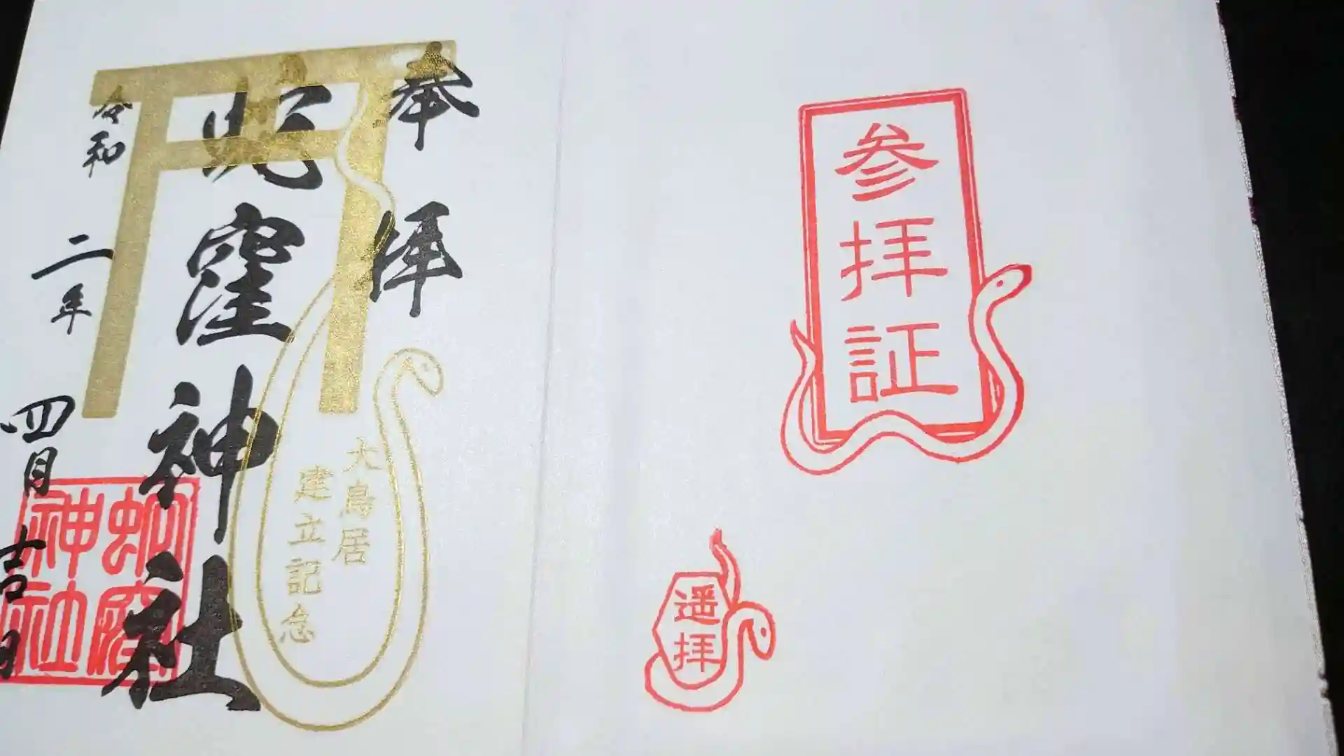 現在、蛇窪神社様から頂いた御朱印帳は、コロナ禍で外出自粛中に郵送で頂いたものです。