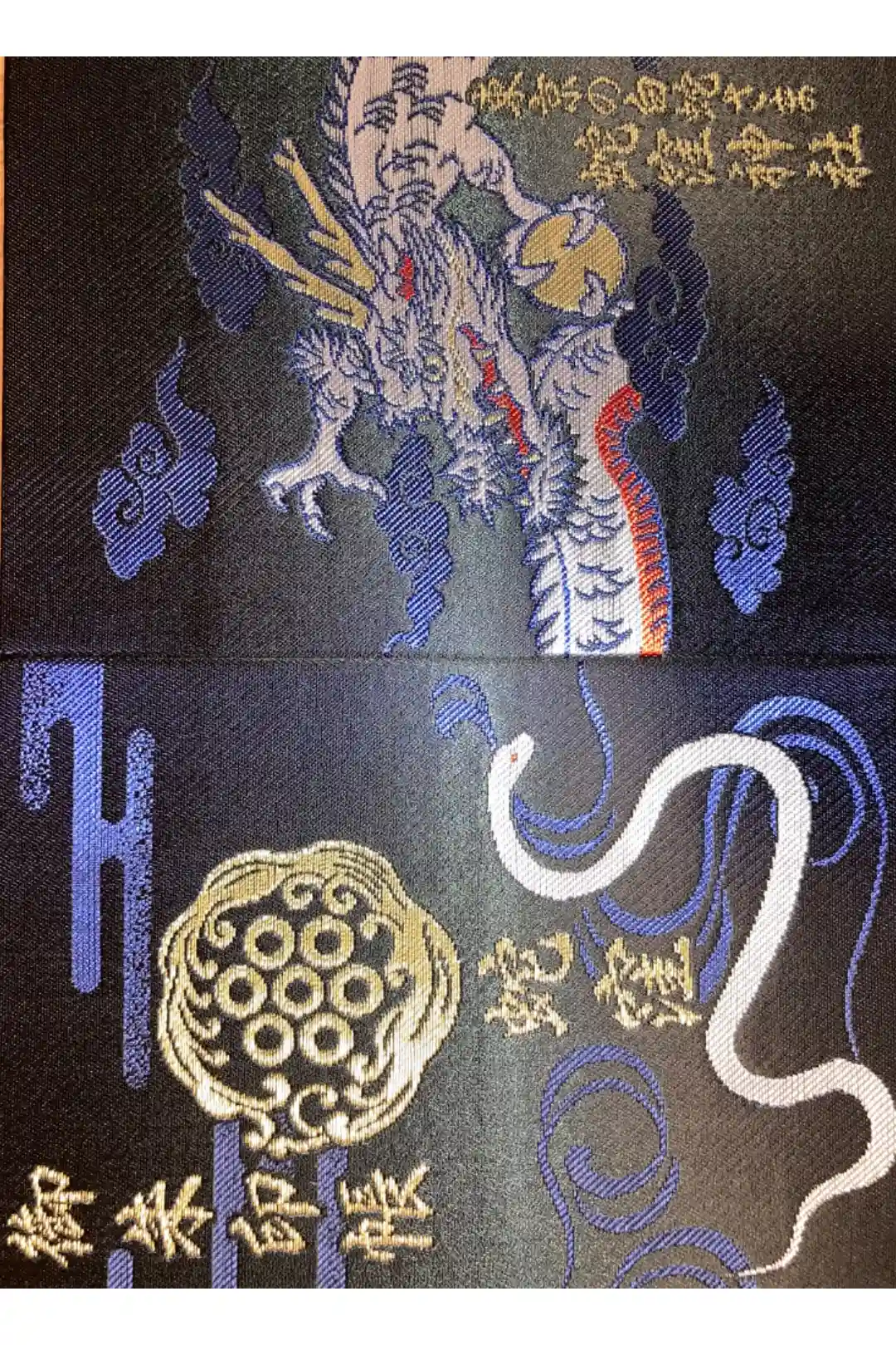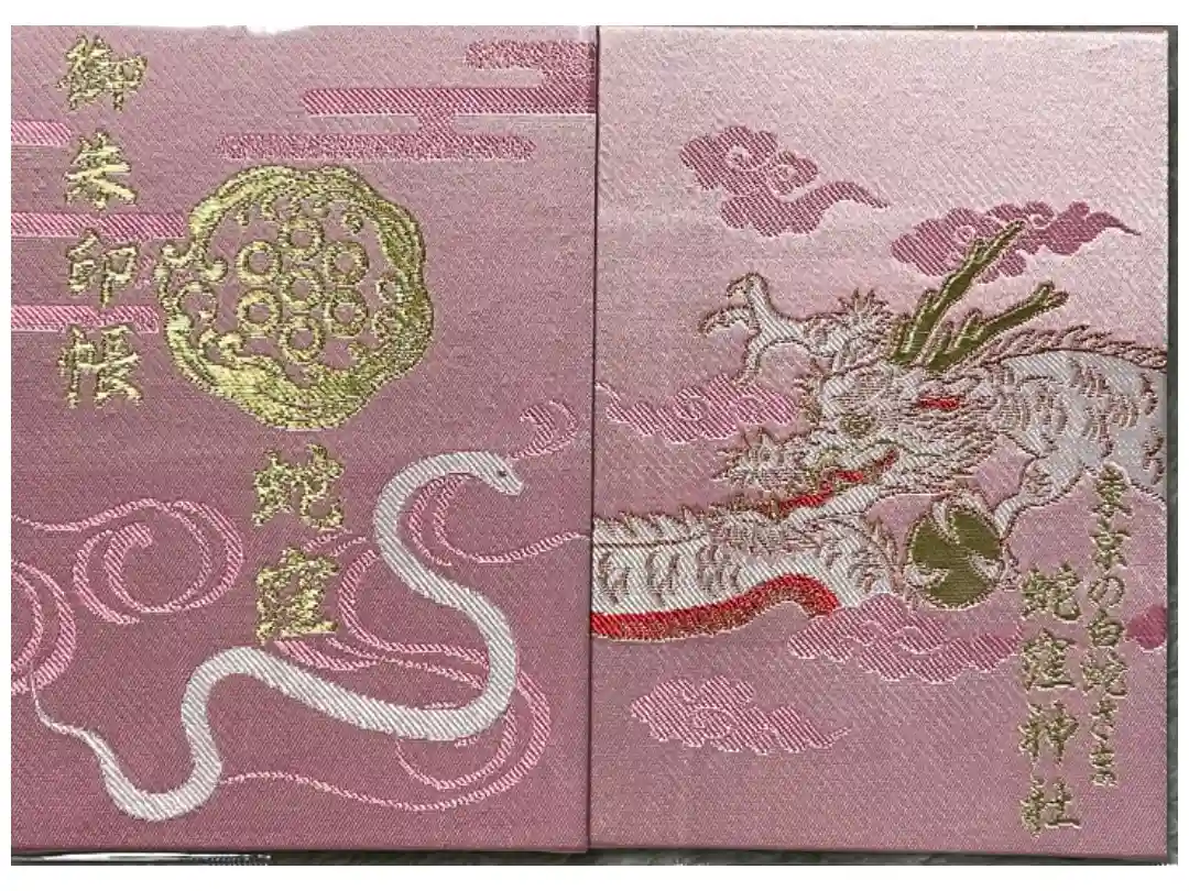 白色と黒色の御朱印帳があります。白色は白蛇、黒色は龍が描かれています。