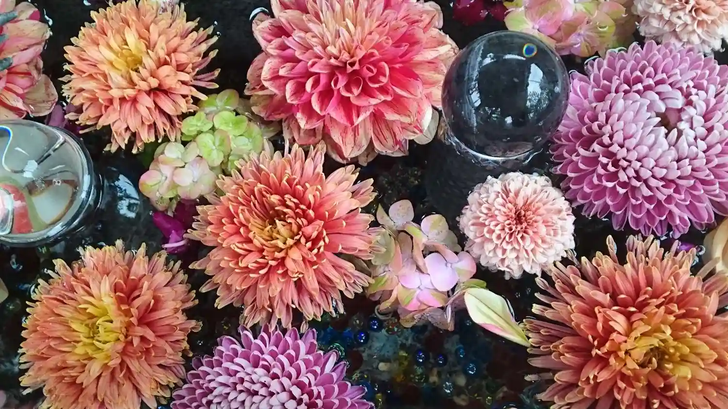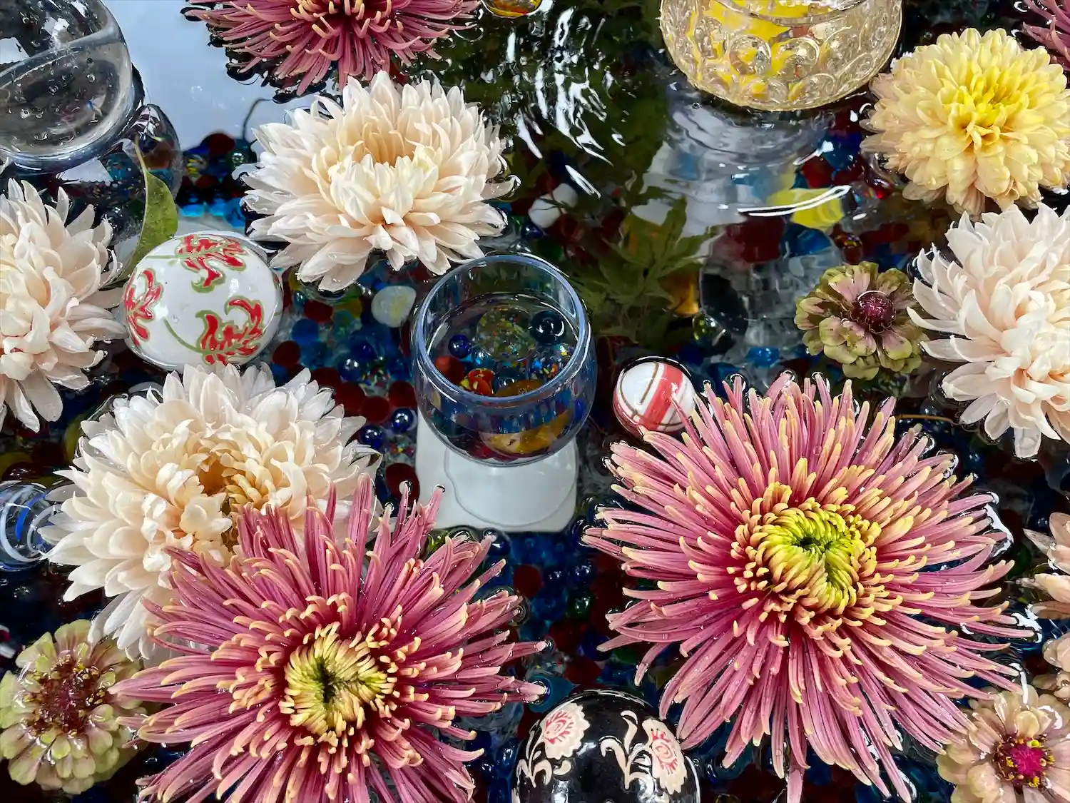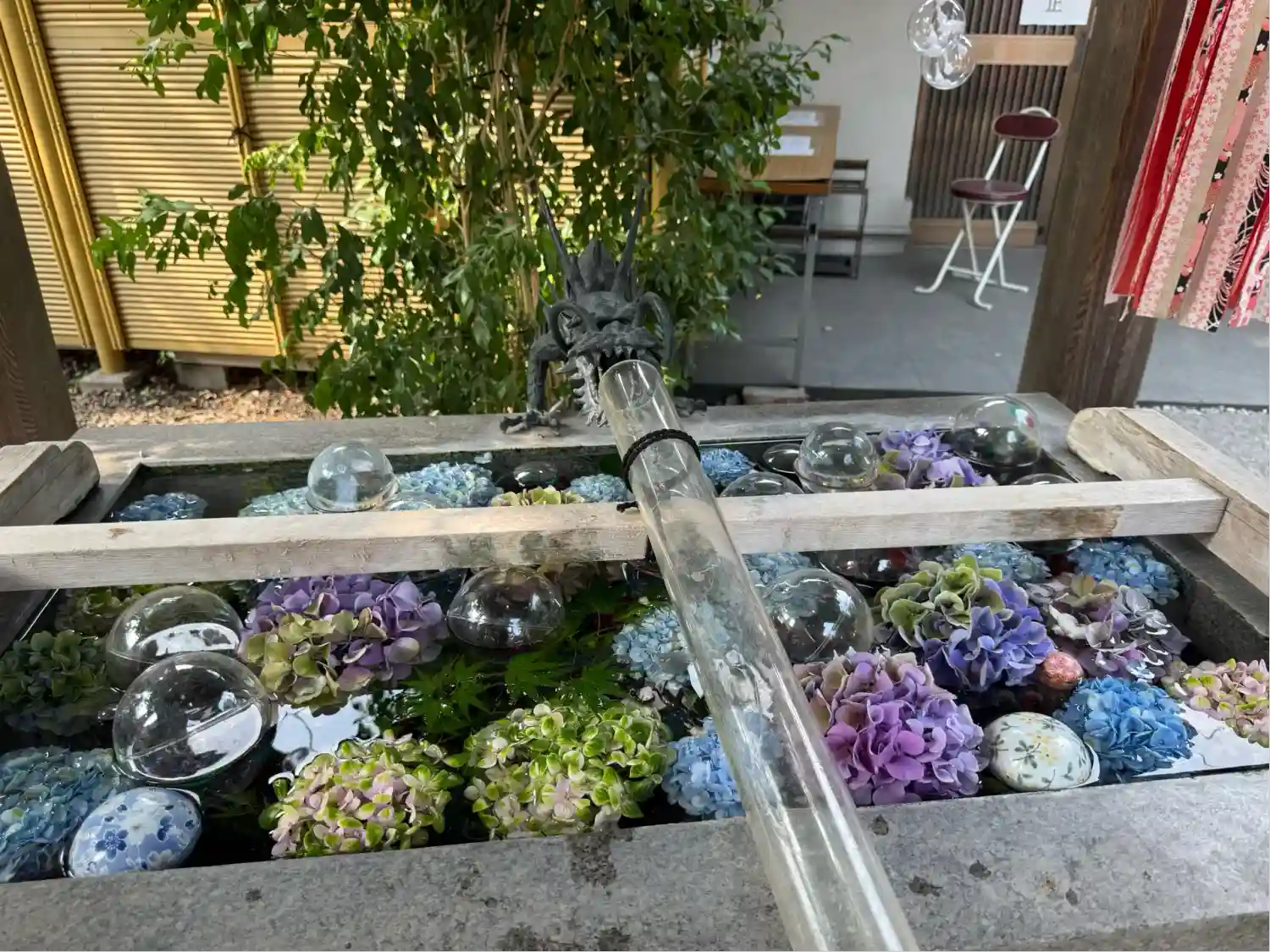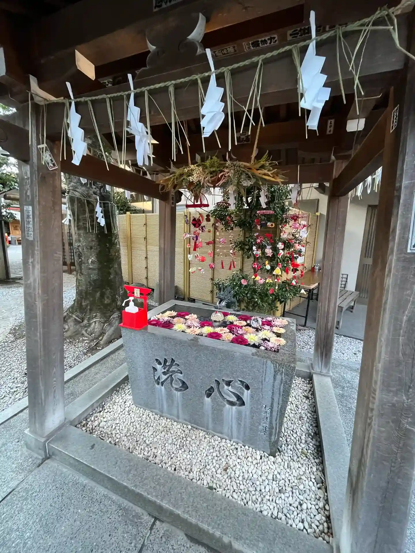 水晶とお花が綺麗な手水舎