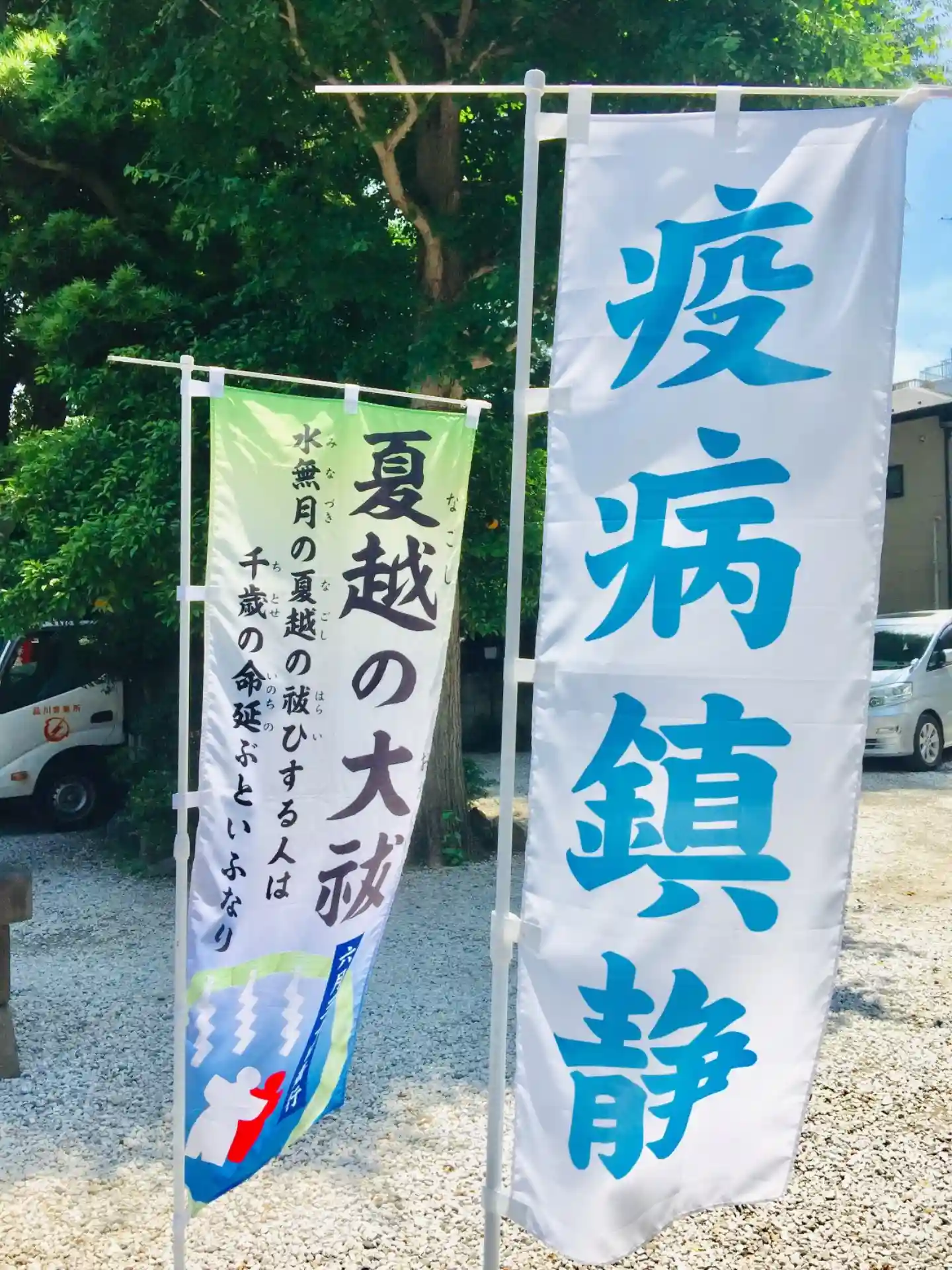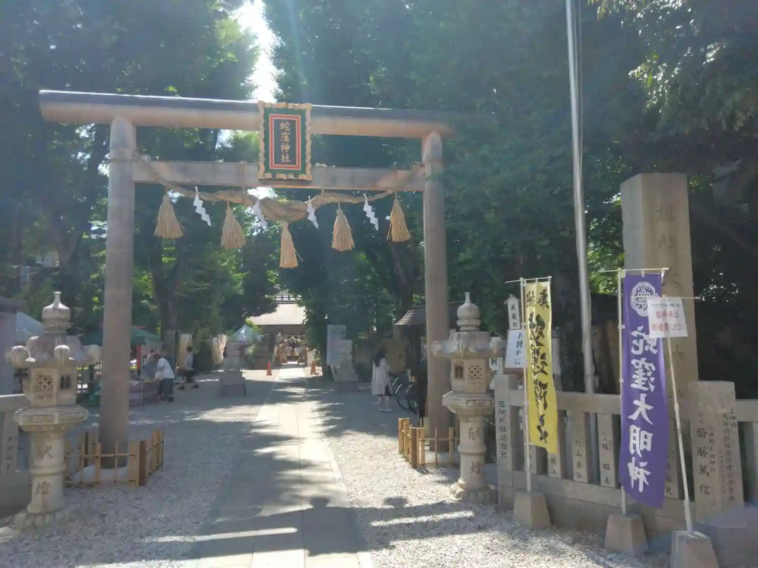 新しい鳥居が素敵です。大鳥居建立記念御朱印と夏越限定御朱印をいただき、茅の輪くぐって来ました。