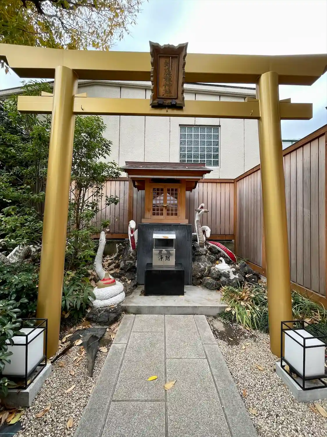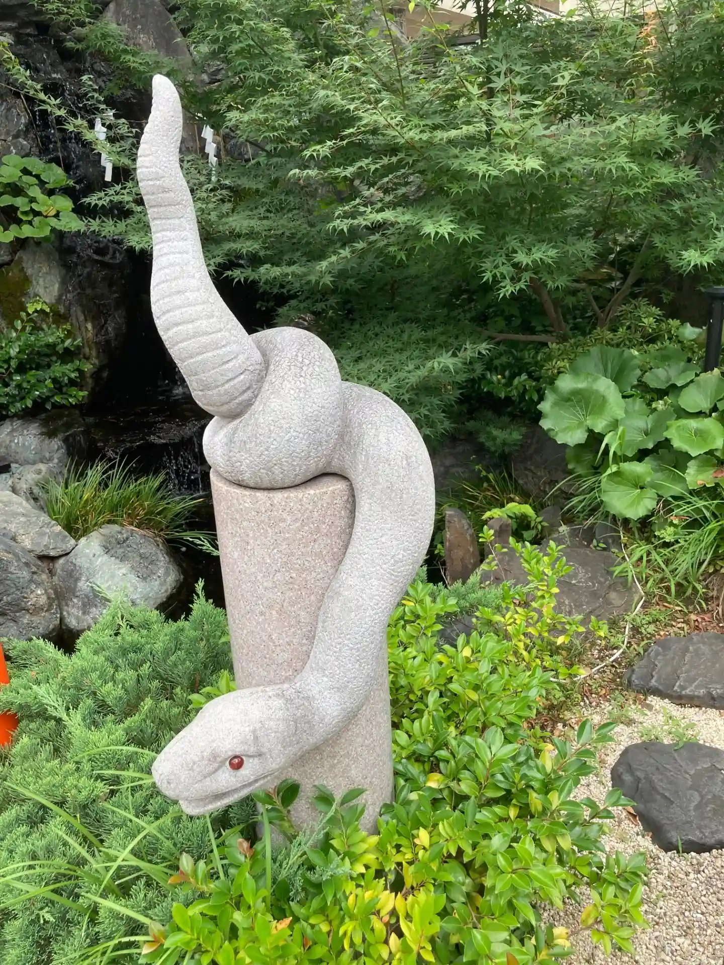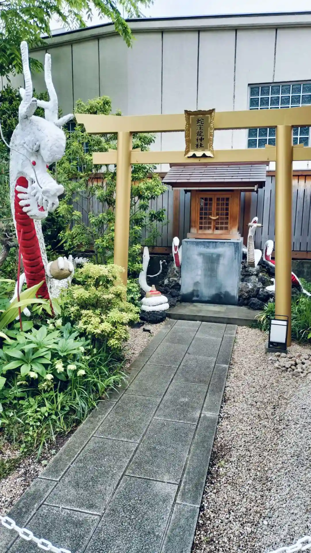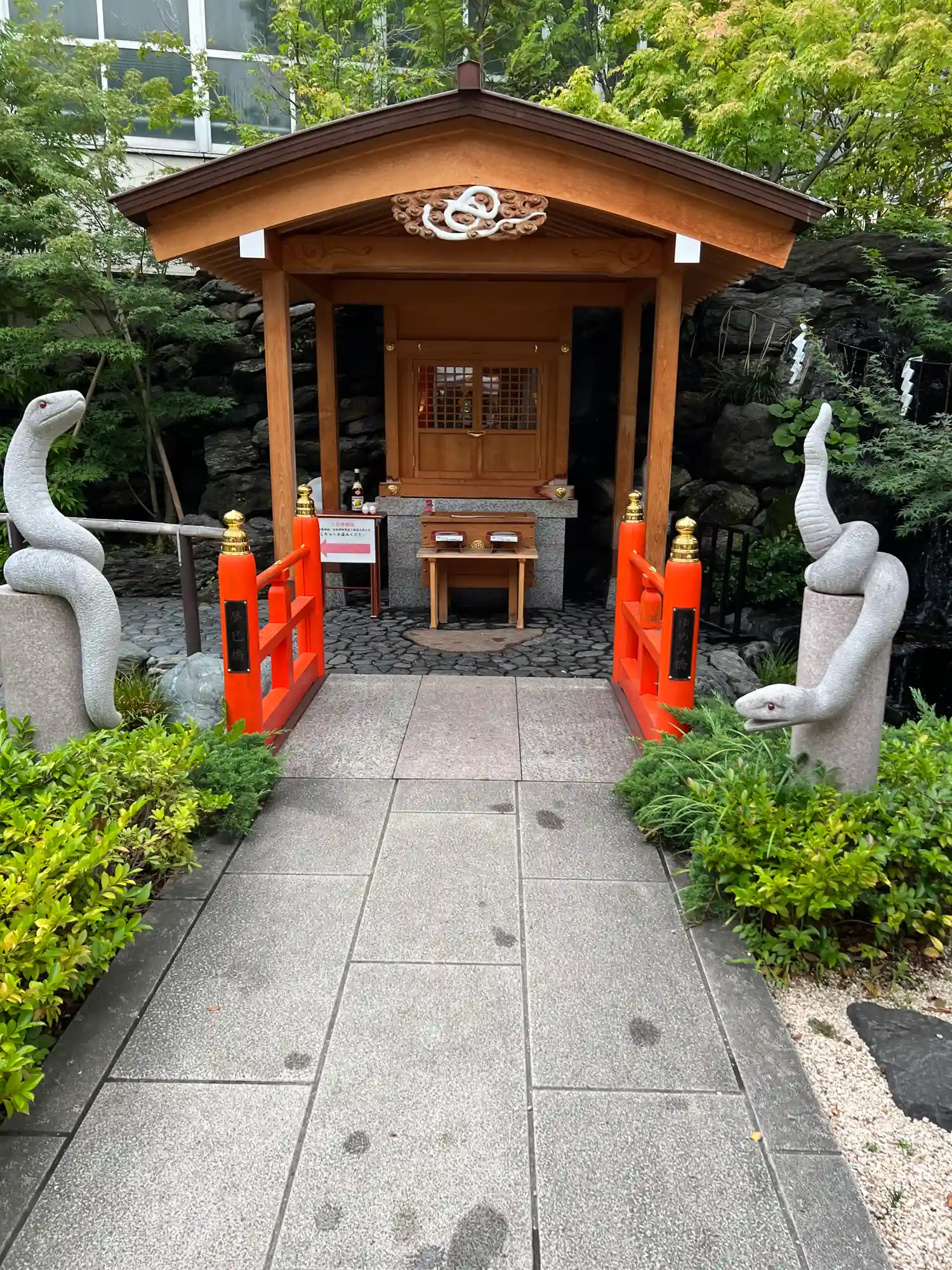 境内の奥には蛇が。蛇窪神社と呼ばれる由縁でしょうか。御朱印にも蛇が🐍