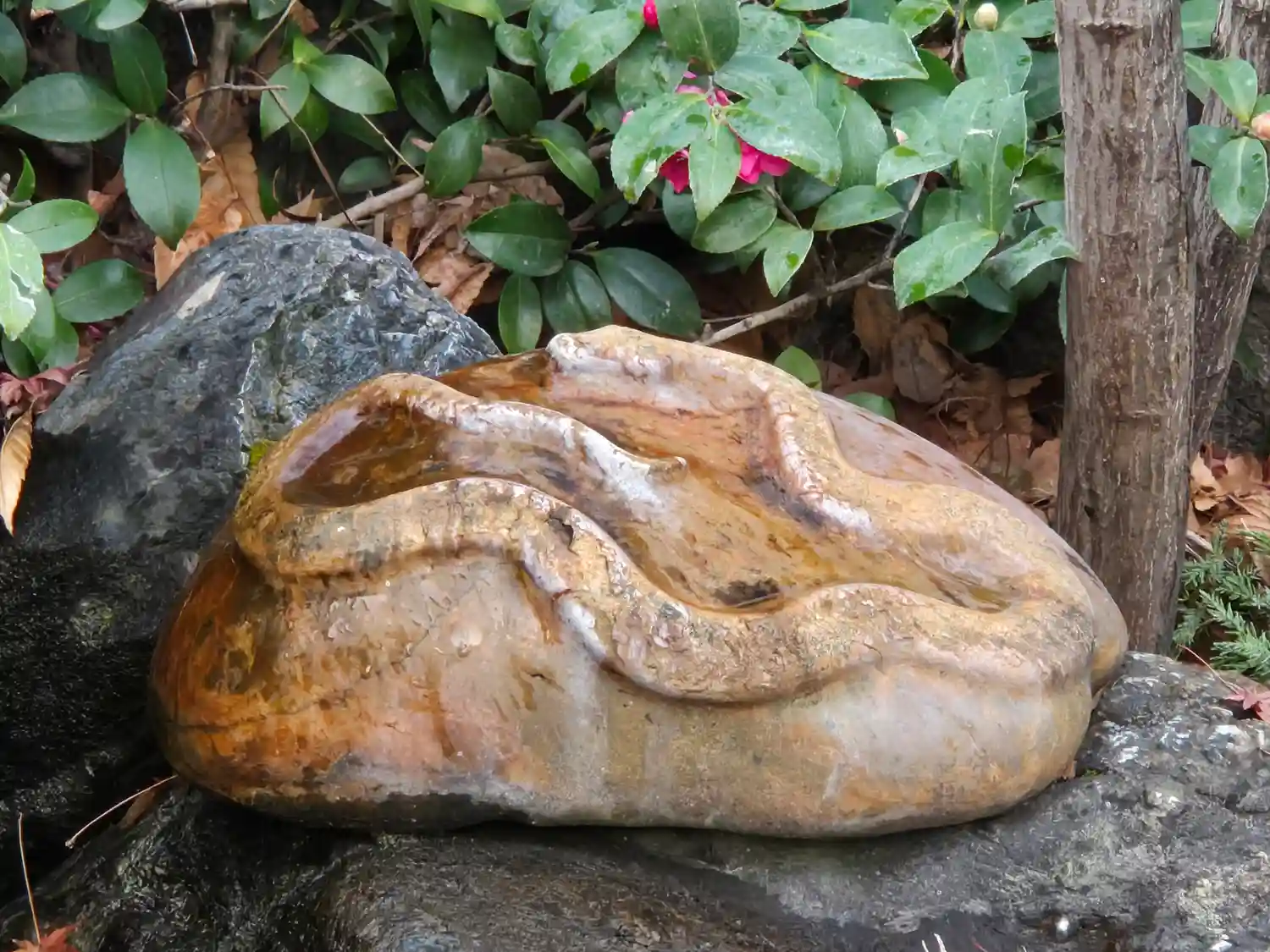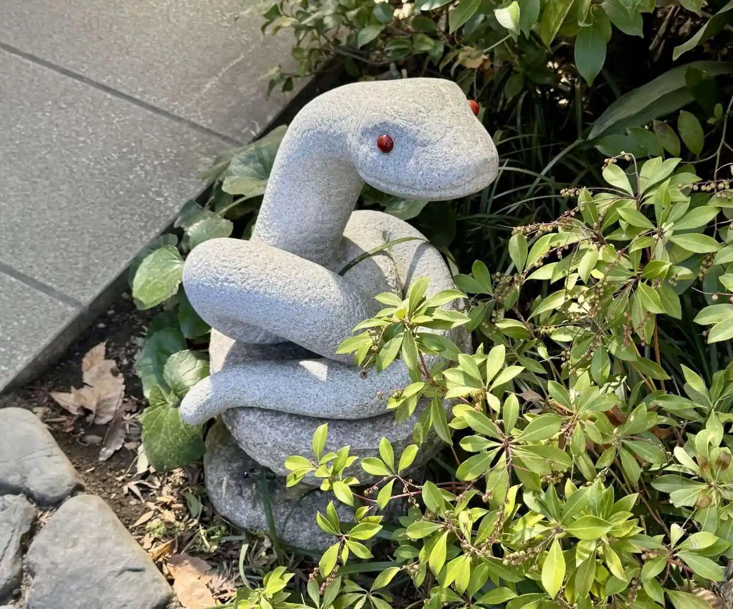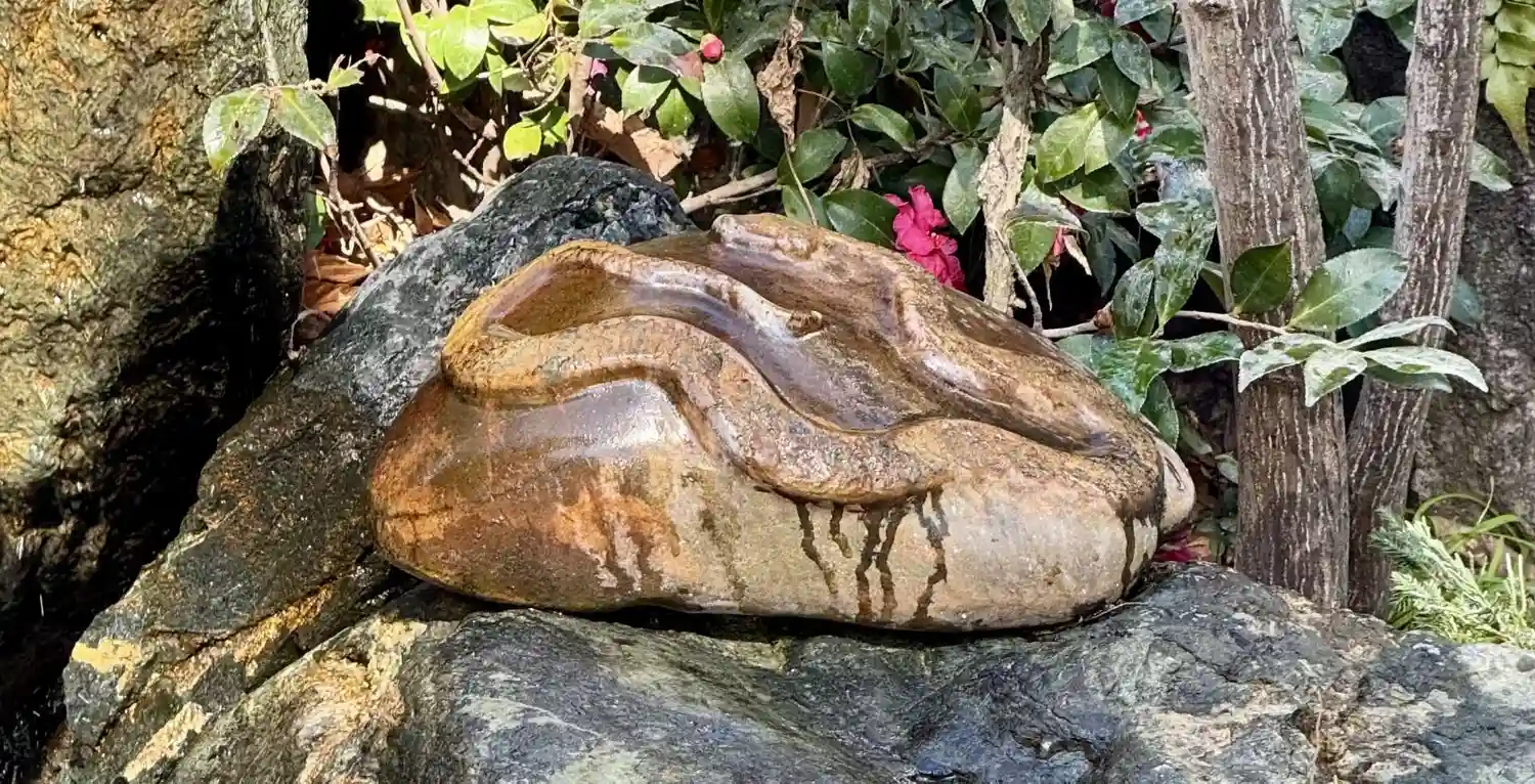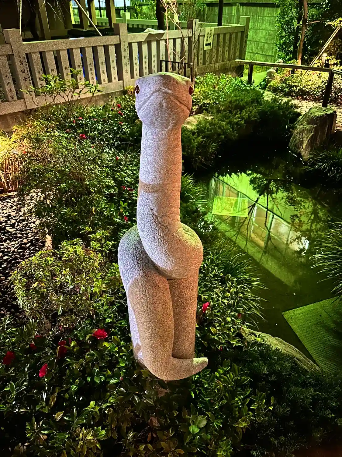 境内の奥には蛇が。蛇窪神社と呼ばれる由縁でしょうか。御朱印にも蛇が🐍