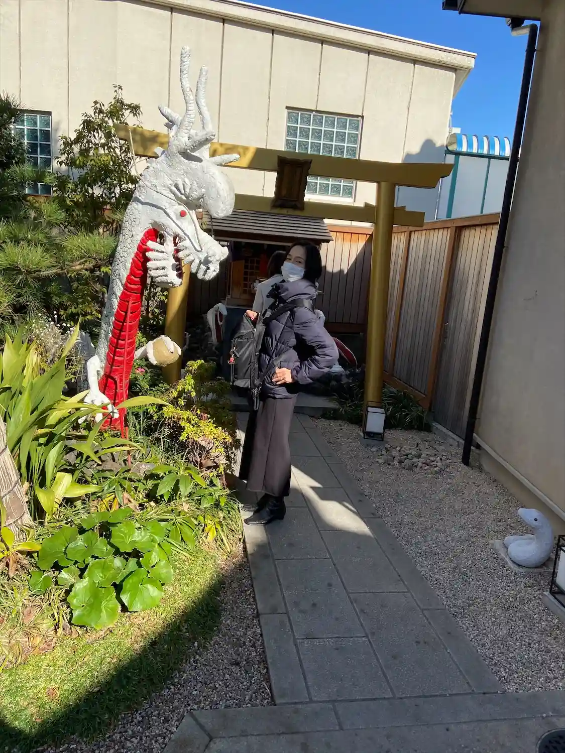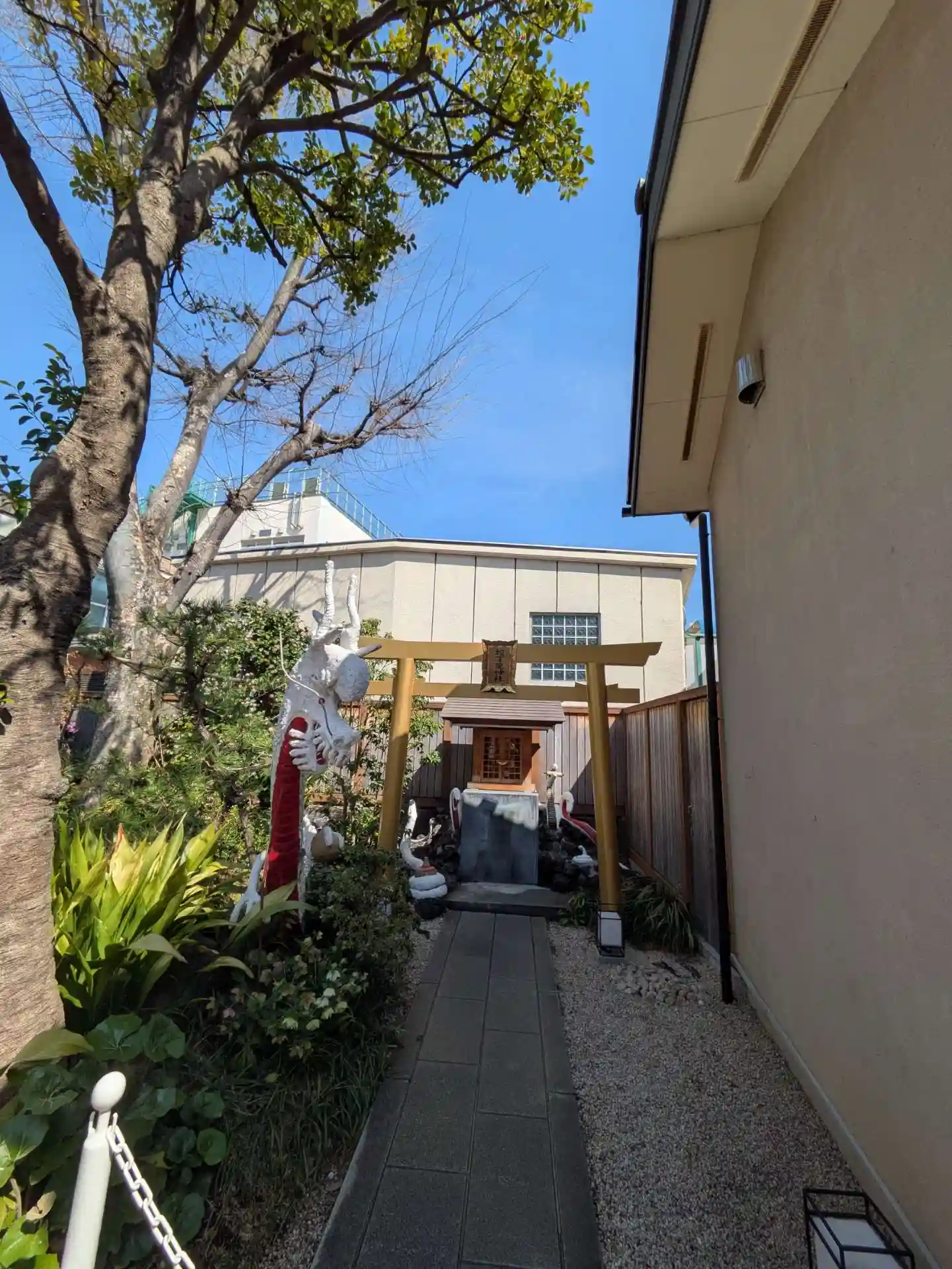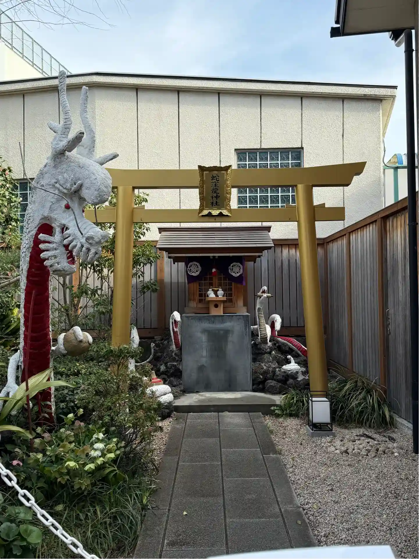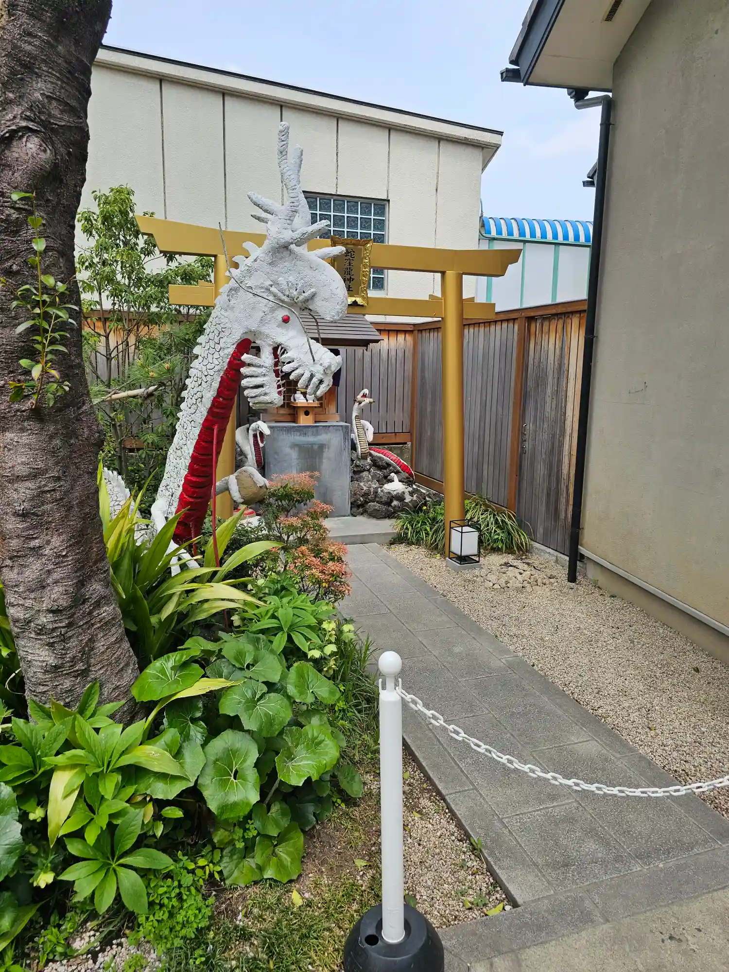 白蛇様は工事中4月には完成予定です。工事が遅れているみたいですね。