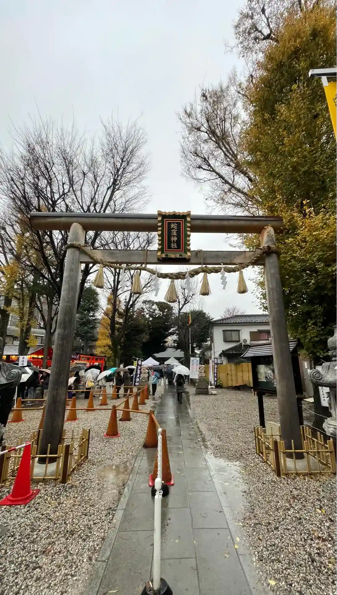 神社の外まで行列で雨の中待ちました…