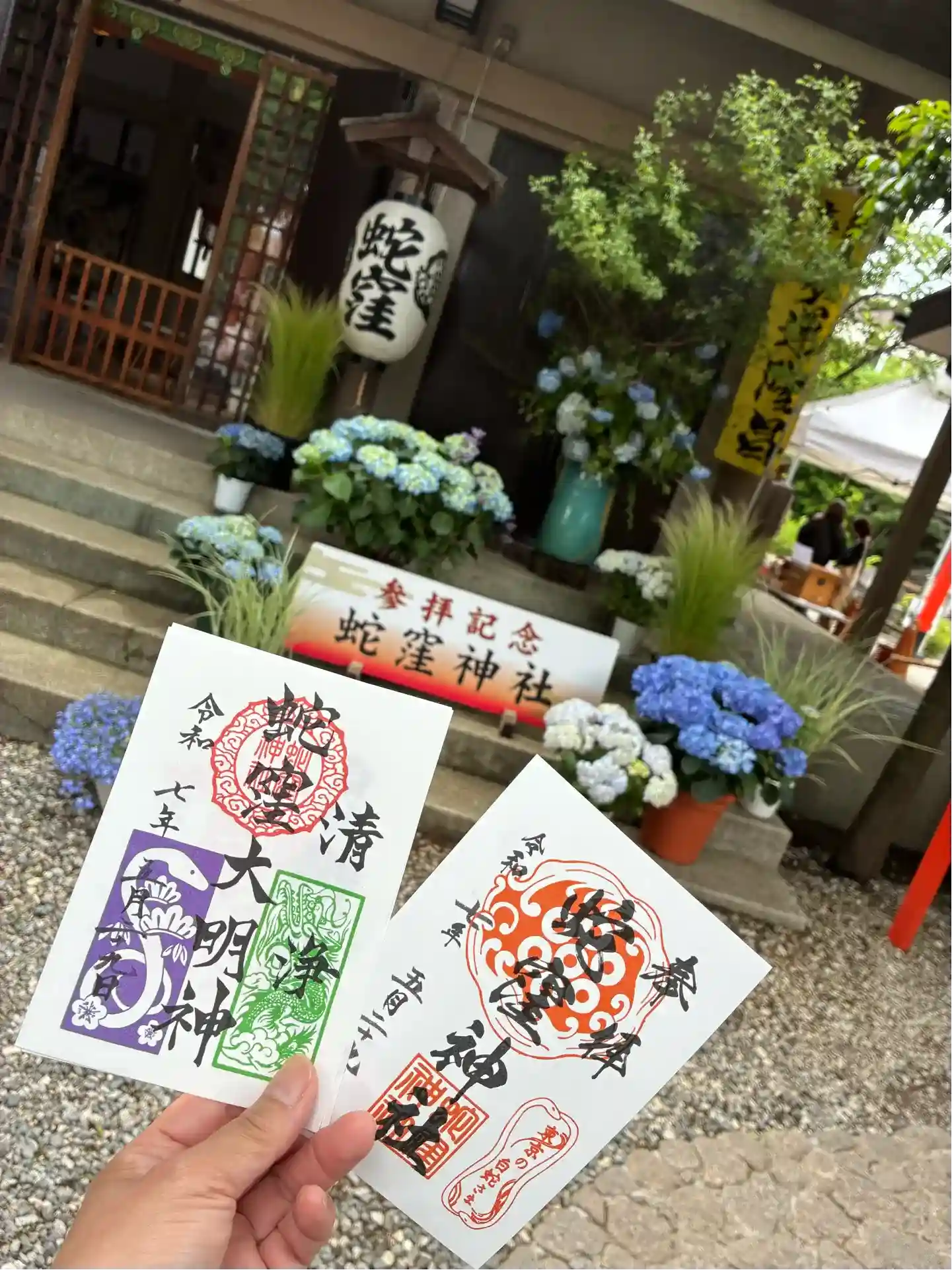 巳の日です。雨の中の参拝です。ご朱印4種(大鳥居建立記念・弁財天・蛇窪大明神・夏越大祓)とご朱印帳…