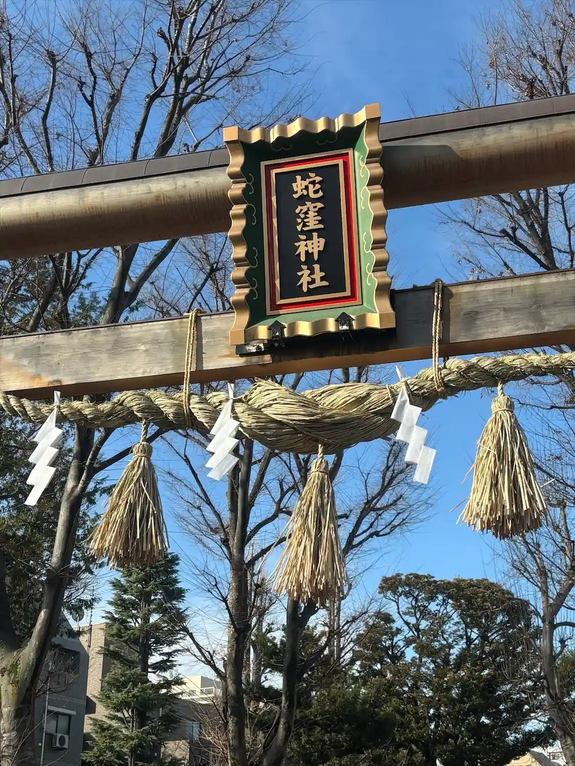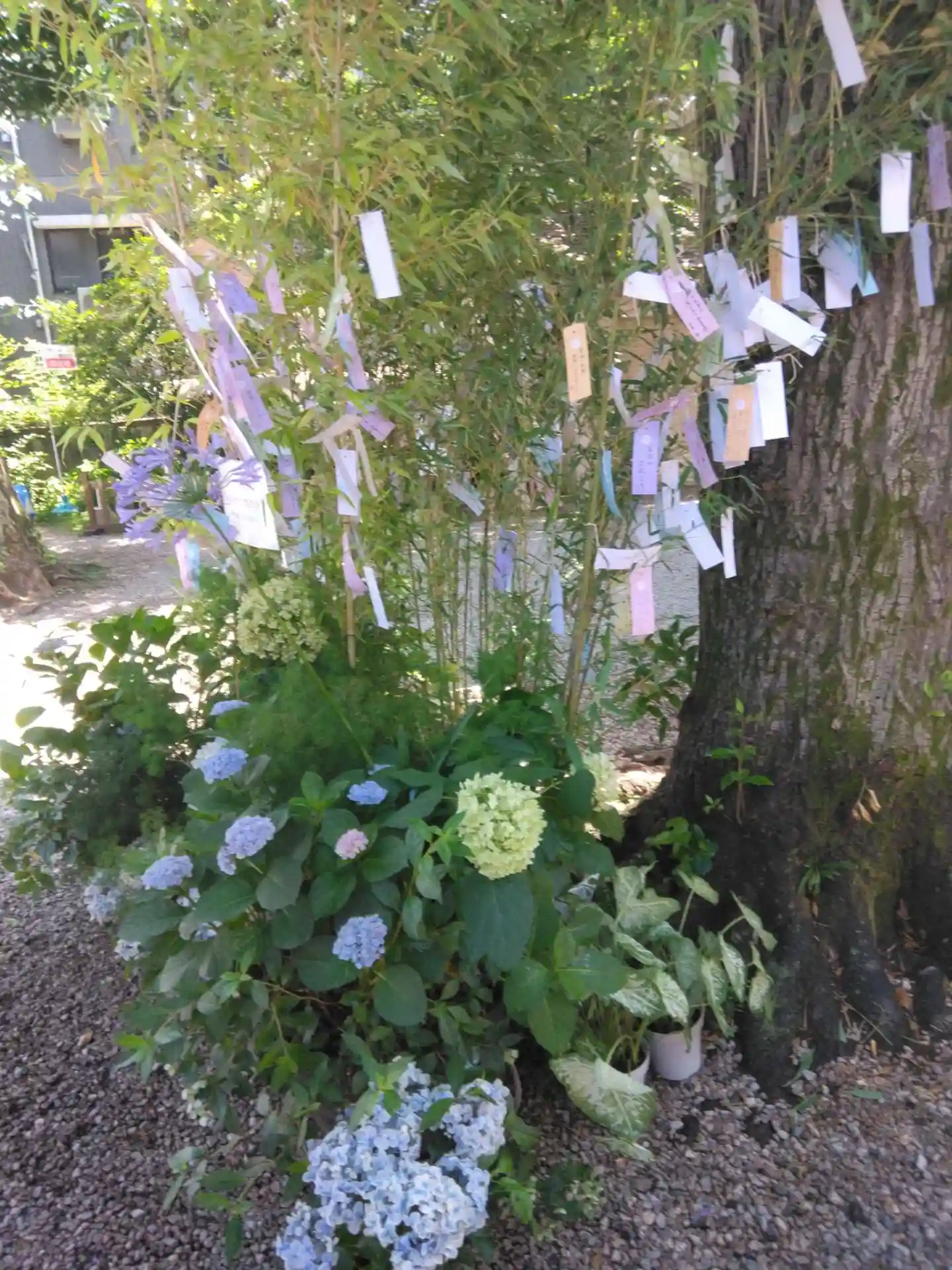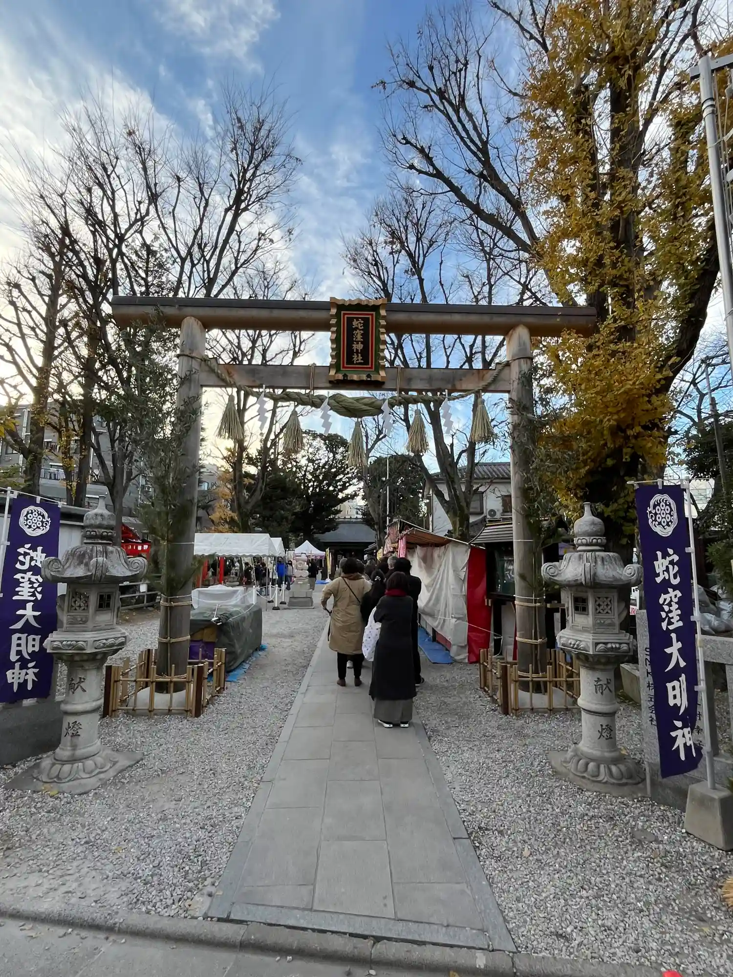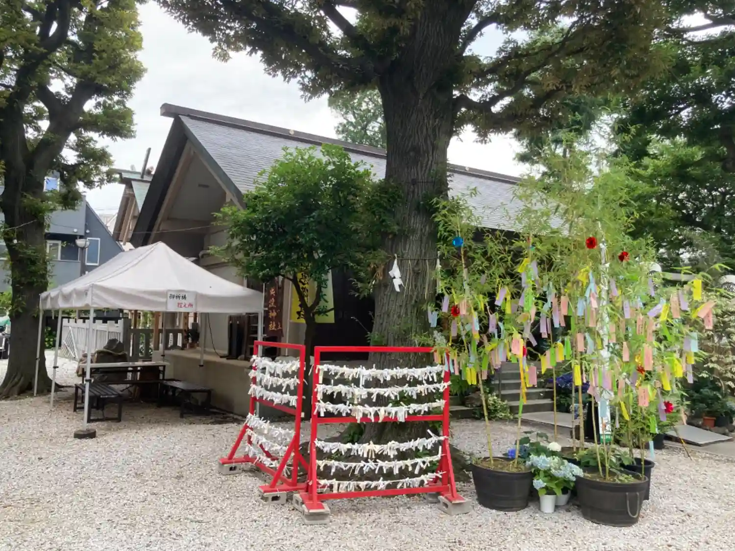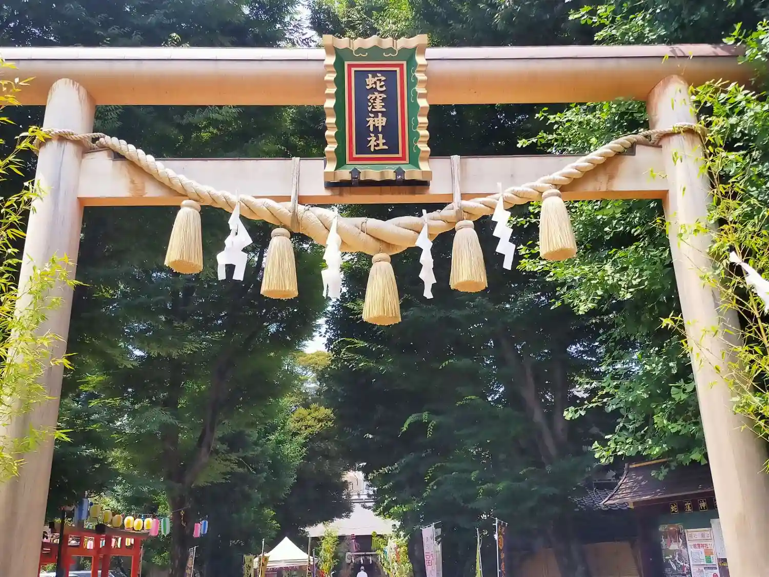 鳥居越しの笹飾り