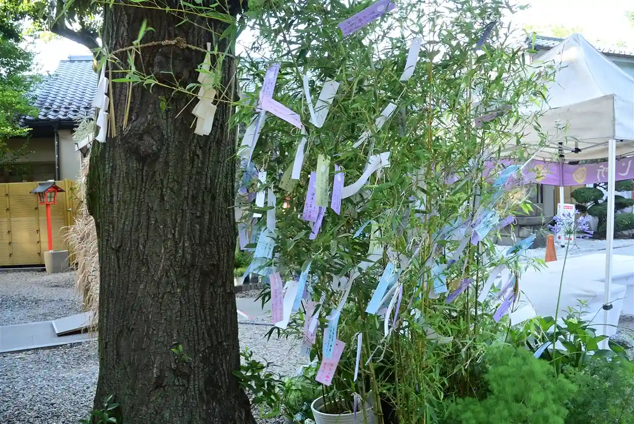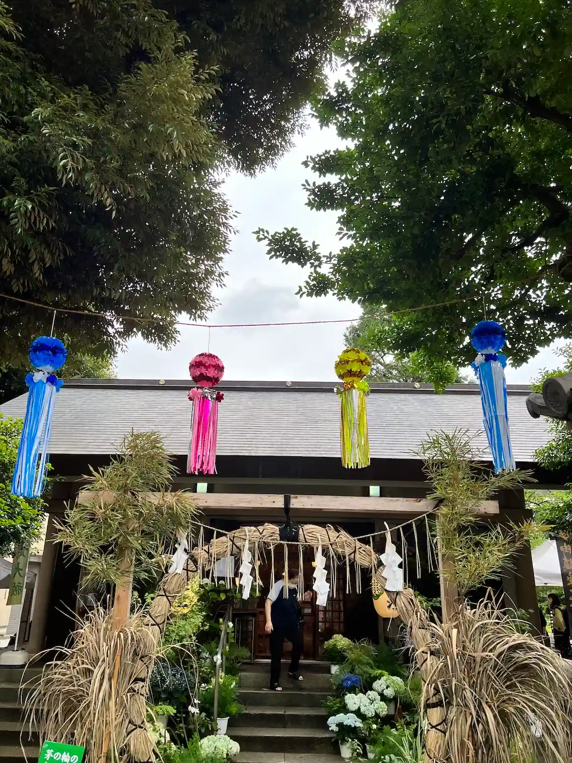 笹飾り越しの拝殿