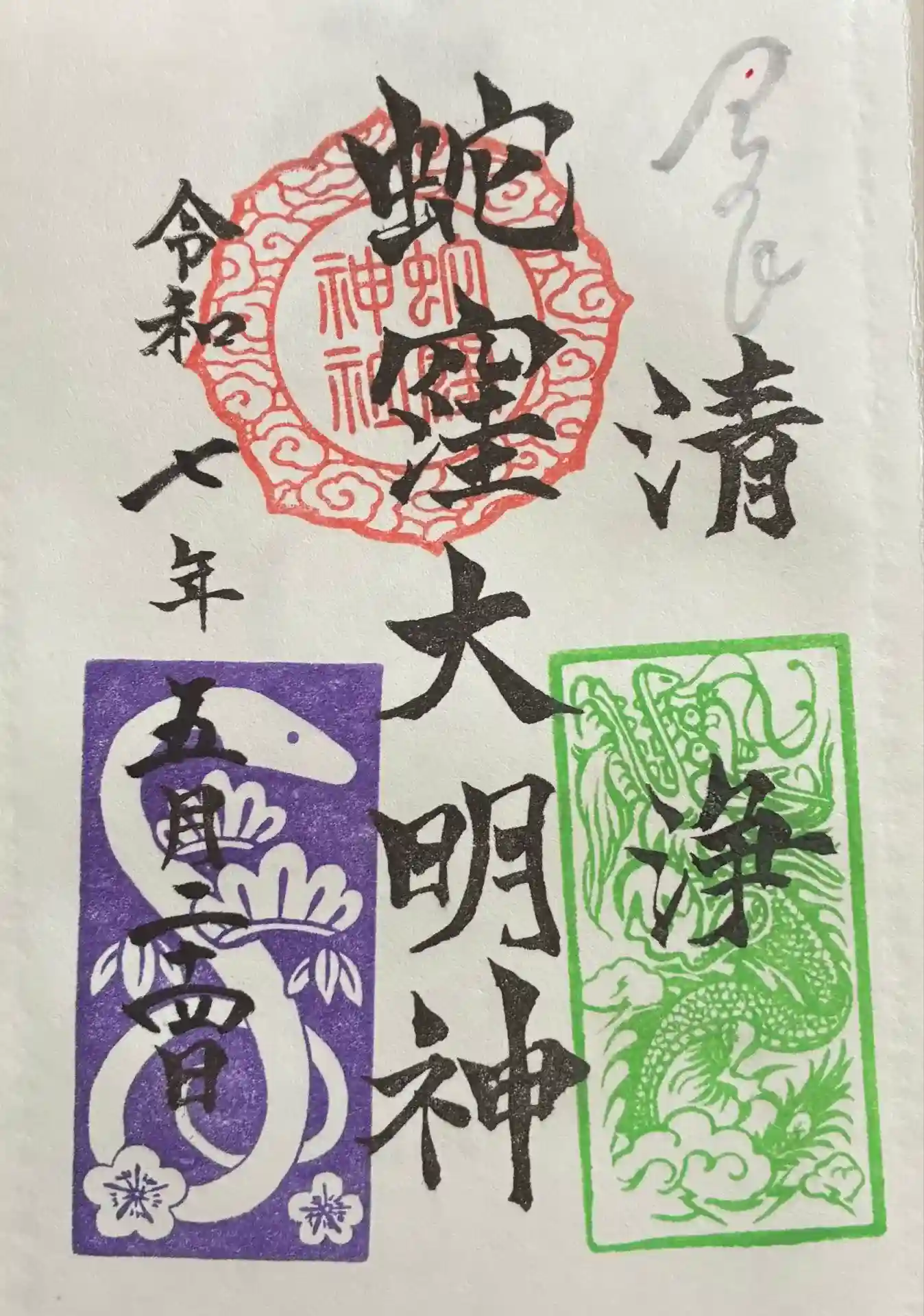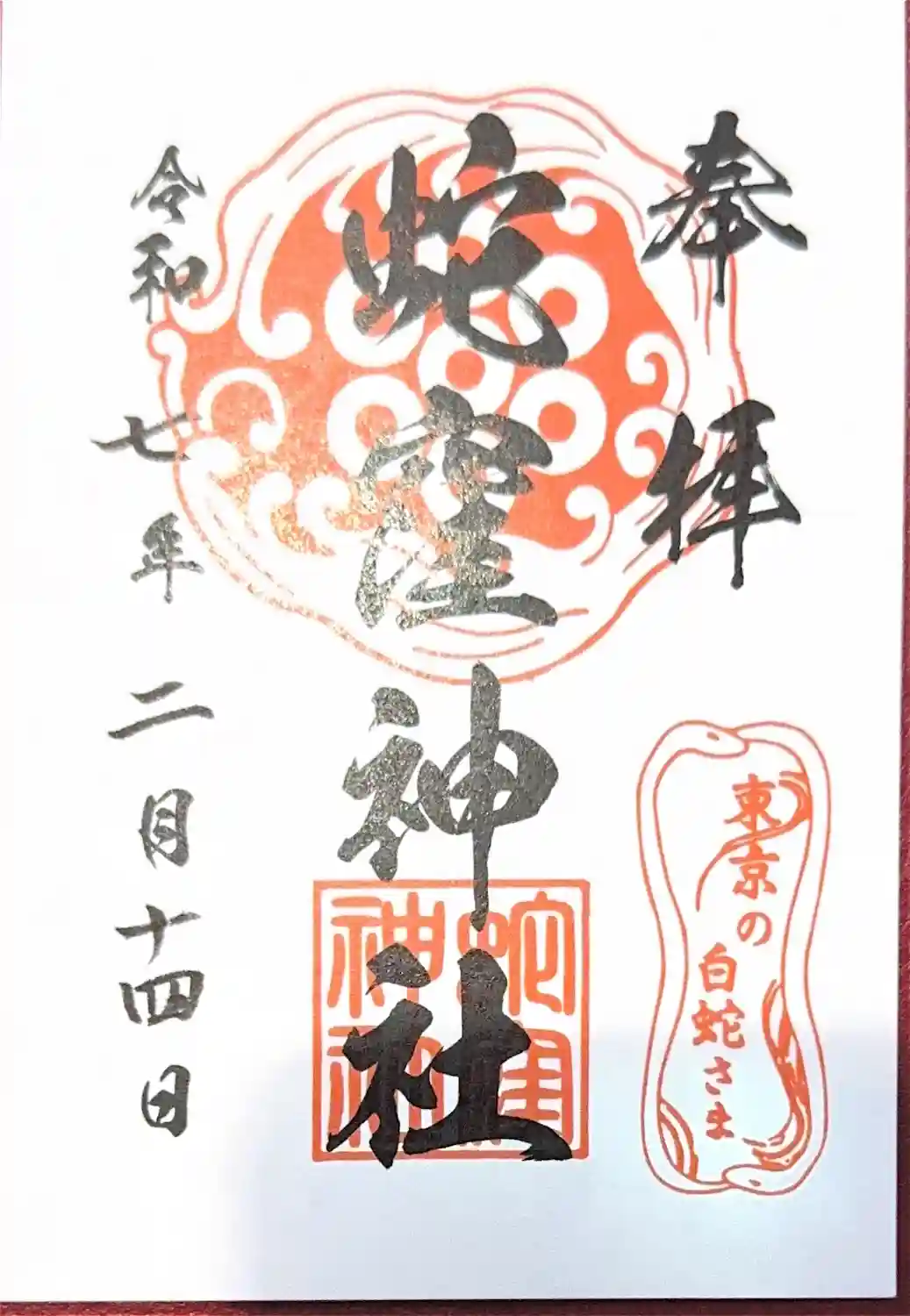 上神明天祖神社(蛇窪神社)の60日に1度の己巳の日の御朱印。