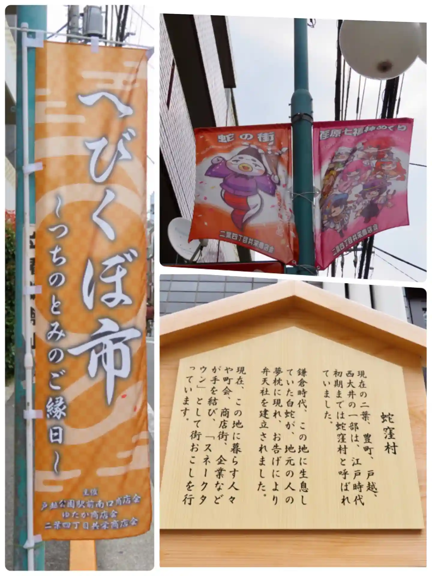 商店街の幟^^ スネークタウン とは よく言ったもんだ^^