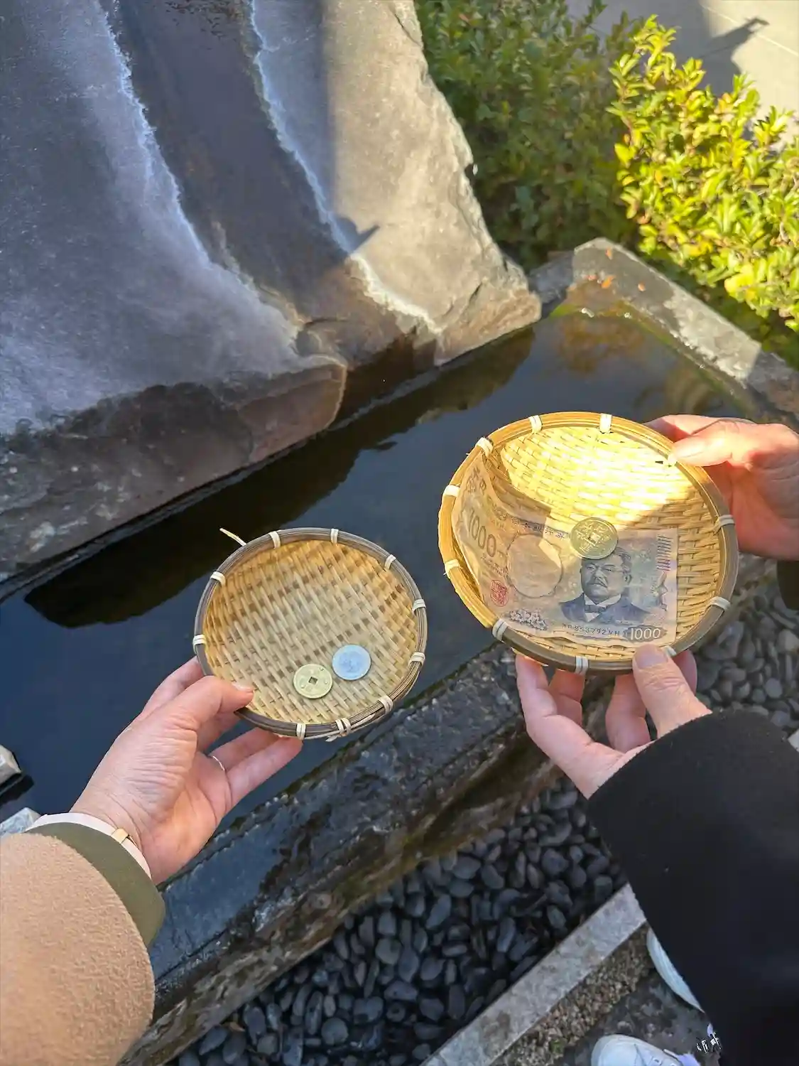 石投げて 大石の皿に入ると御利益があるとか^^