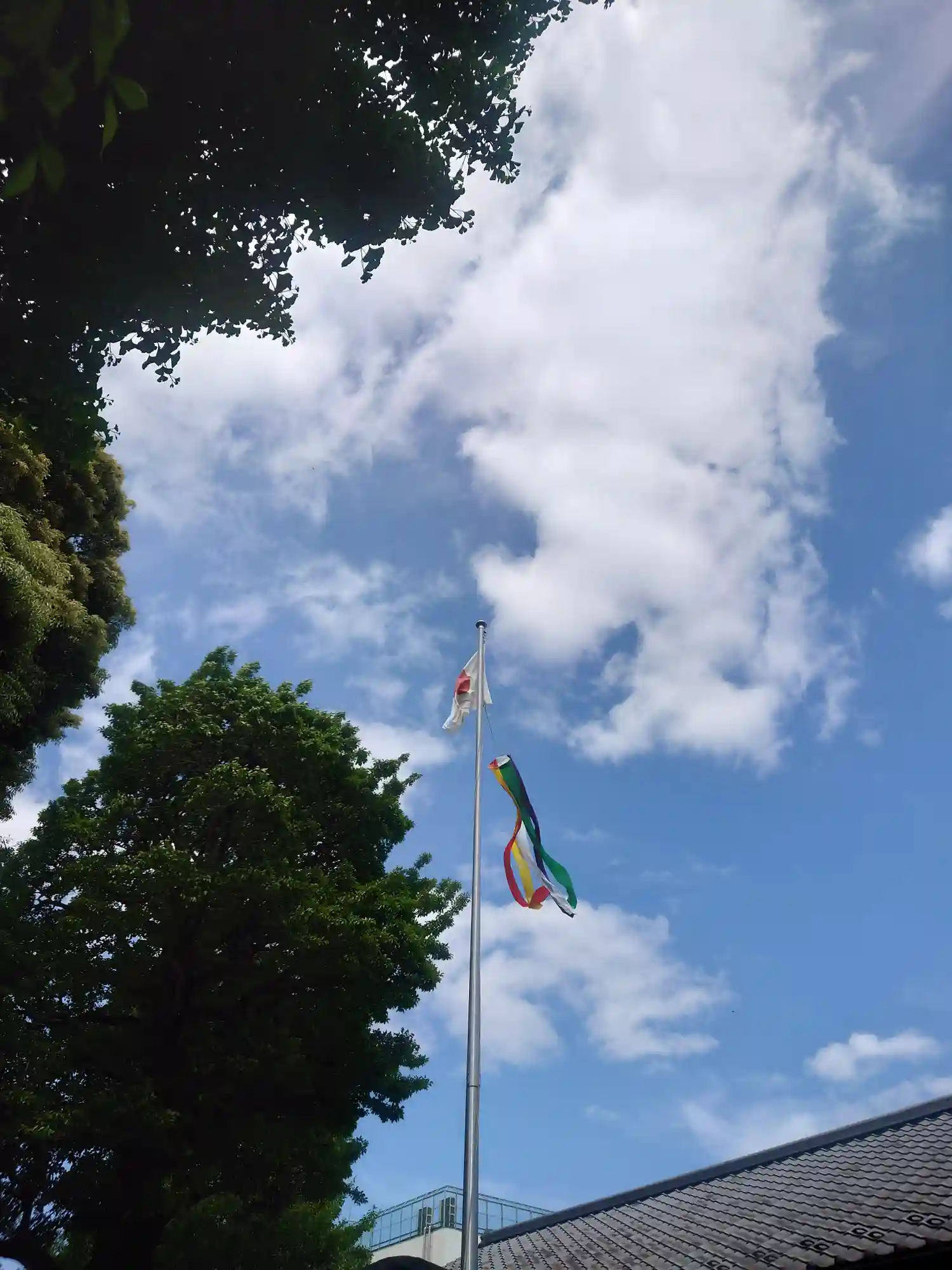 境内の日の丸がなびいておりました。