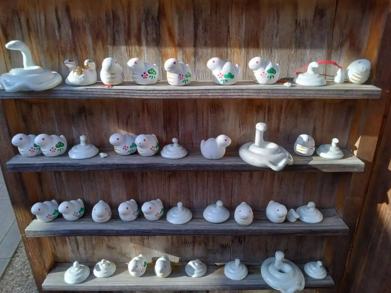 巳くじや白蛇置物🐍がずらりと