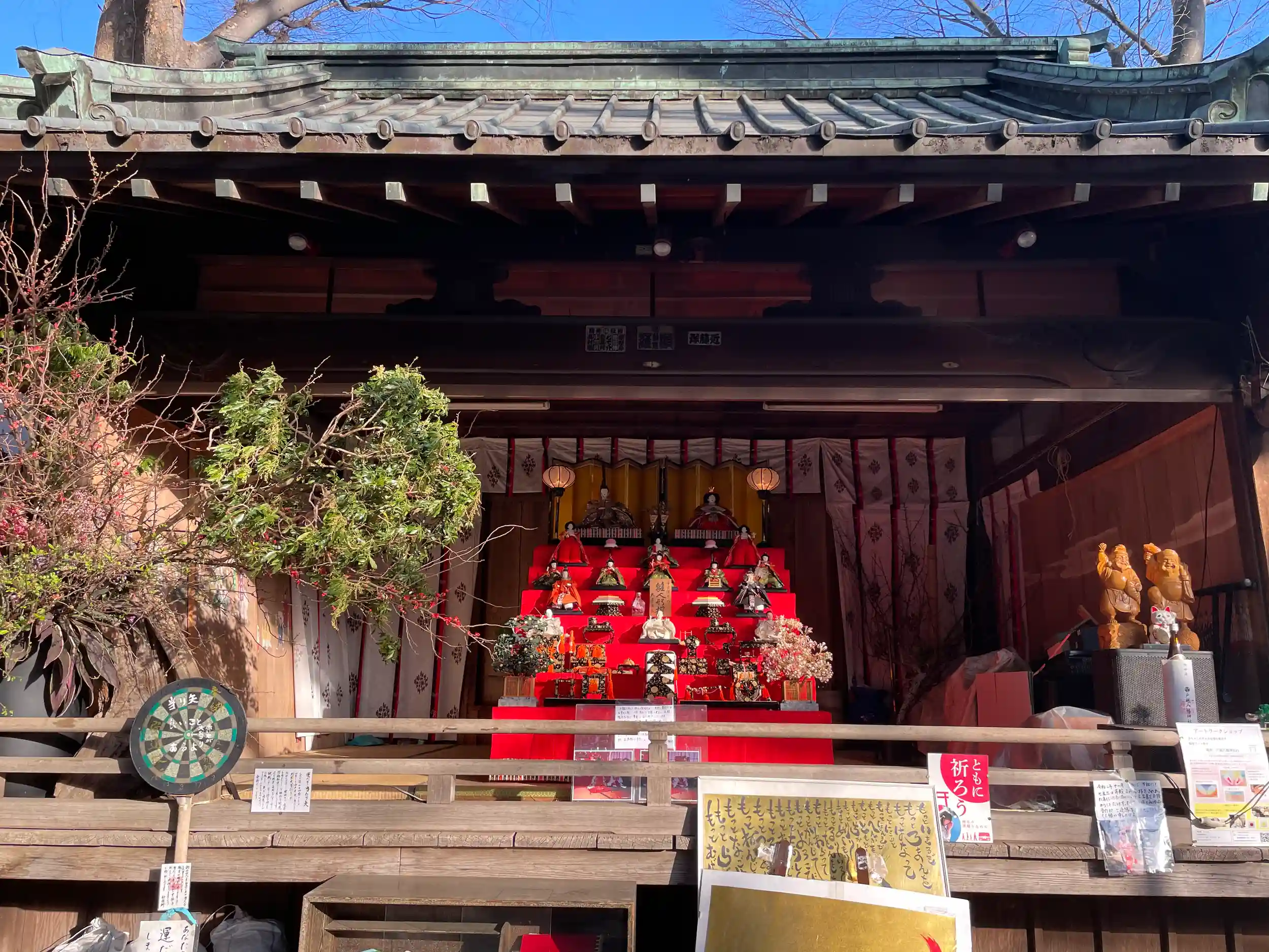 長い参道を利用していろんなディスプレイがあったり、境内に市のようなお店が立ち人の集まる工夫が沢山。今月18日から工事で本殿が少し奥に移動されるとのこと。今の姿で見られるのは最後です。御朱印の種類多くどれにするか迷うほど。御朱印いただくと、お茶もいただけ、お雛様が飾られていた神楽殿前のソファーで一服。こんなサービス他で見たことないです。ありがとうございました。
