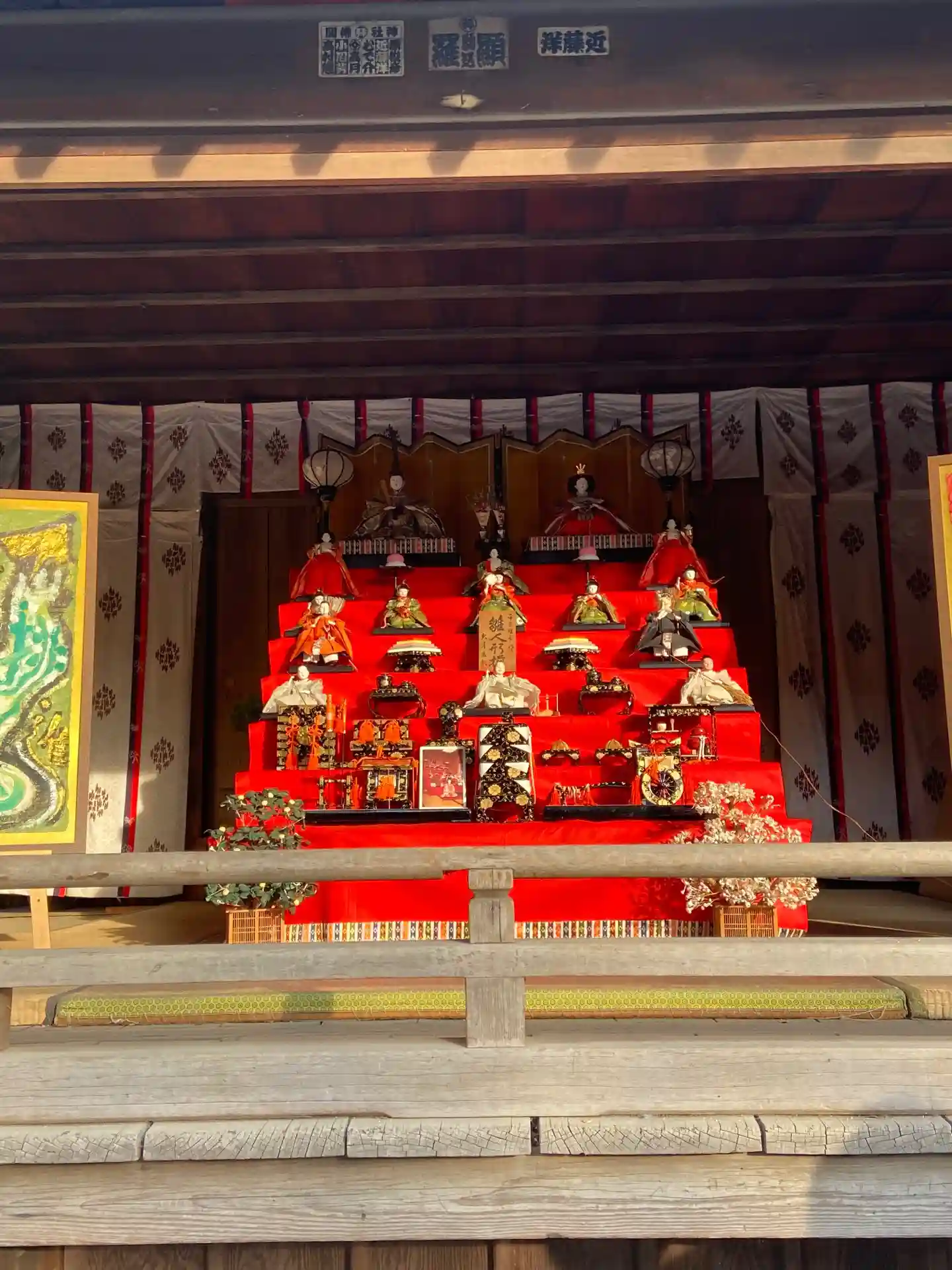 雛祭り後なので、7段の雛人形や、吊るし雛が飾られていました。息子しかいないので雛人形は新鮮です。