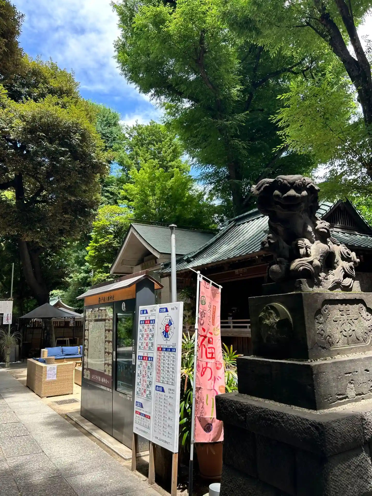 御朱印が大人気ですね。戸越八幡神社に参拝しました。境内にソファーが設備され参拝客が、休憩出来るスペ…