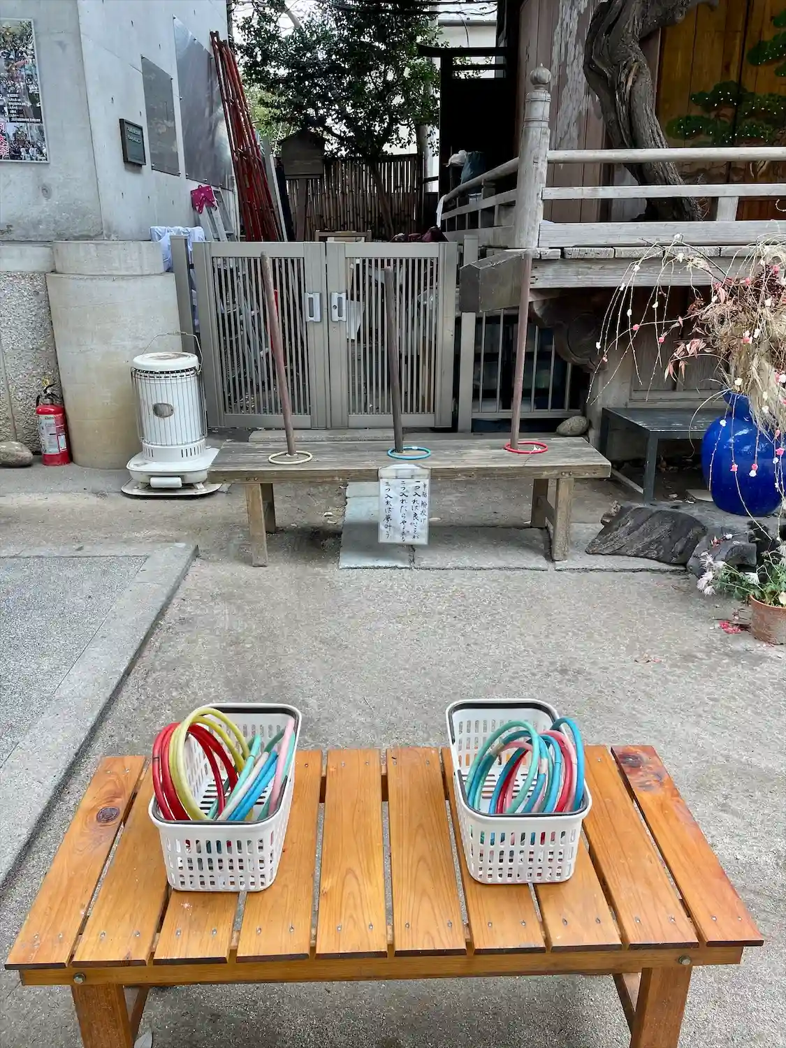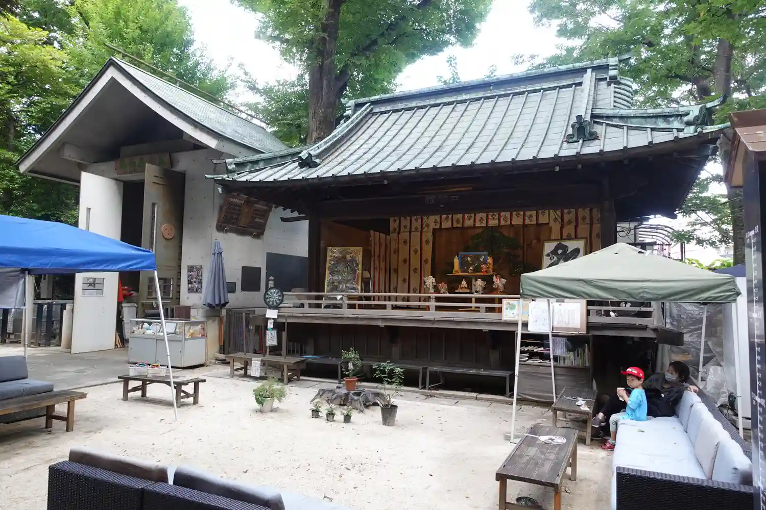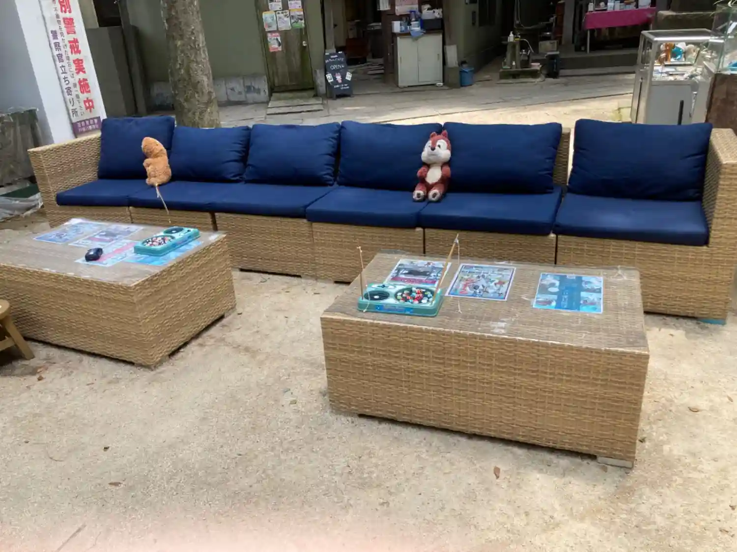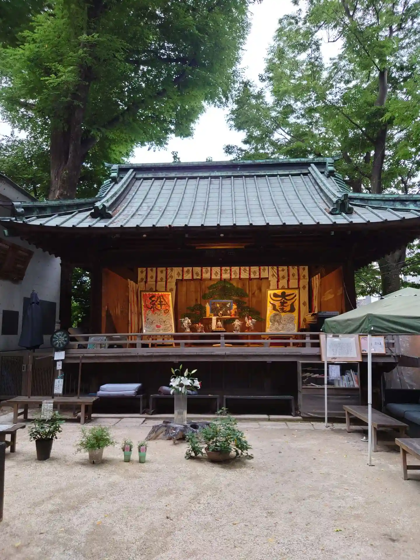 この日は快晴で20度超えだったのに、昼下がりに雨が降りました。憩いの場となっているソファのクッションをあわてて神楽殿に放り込んだようです。