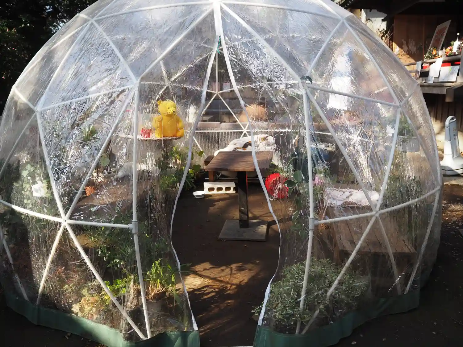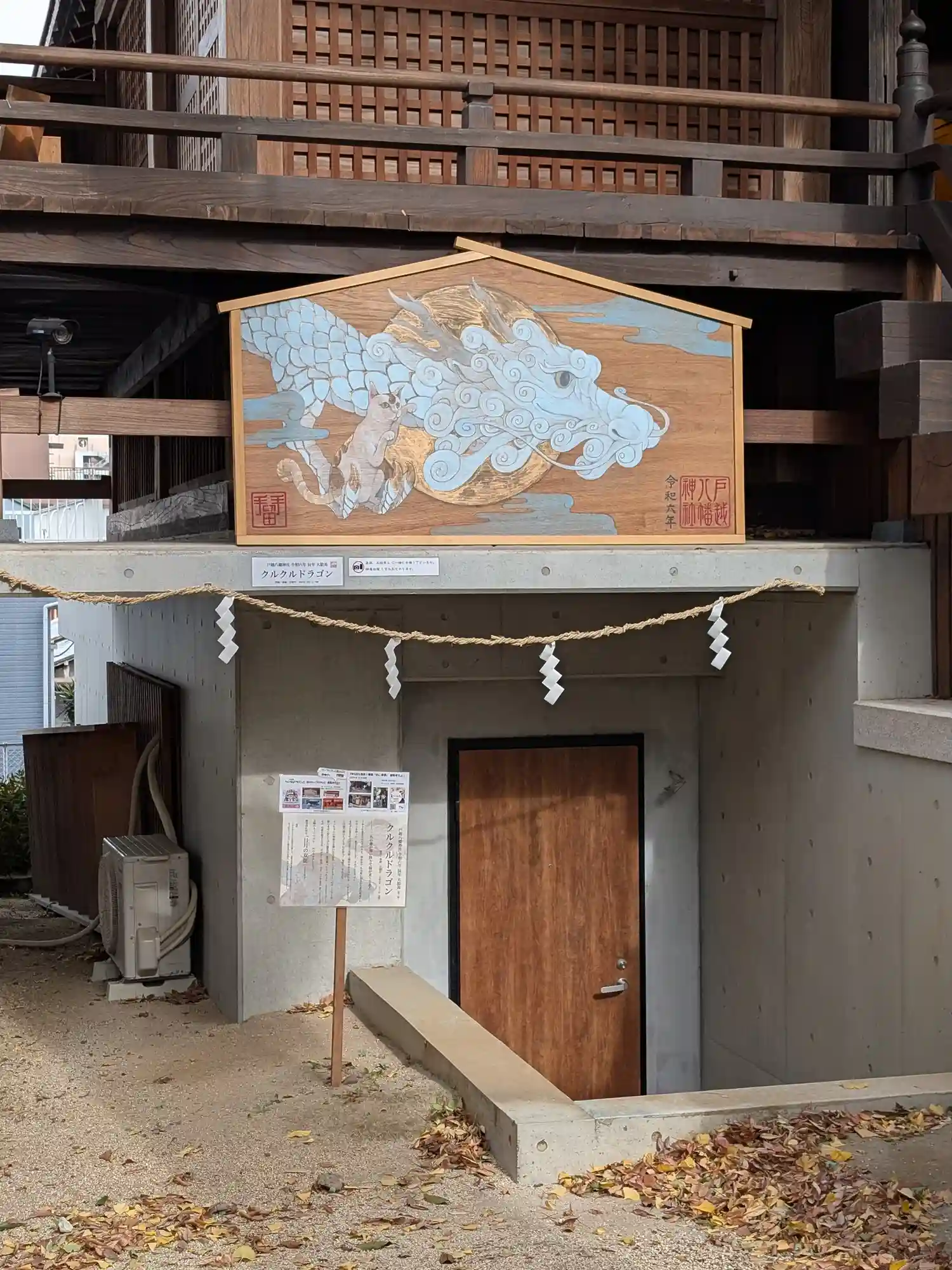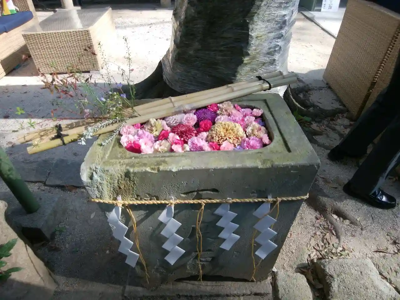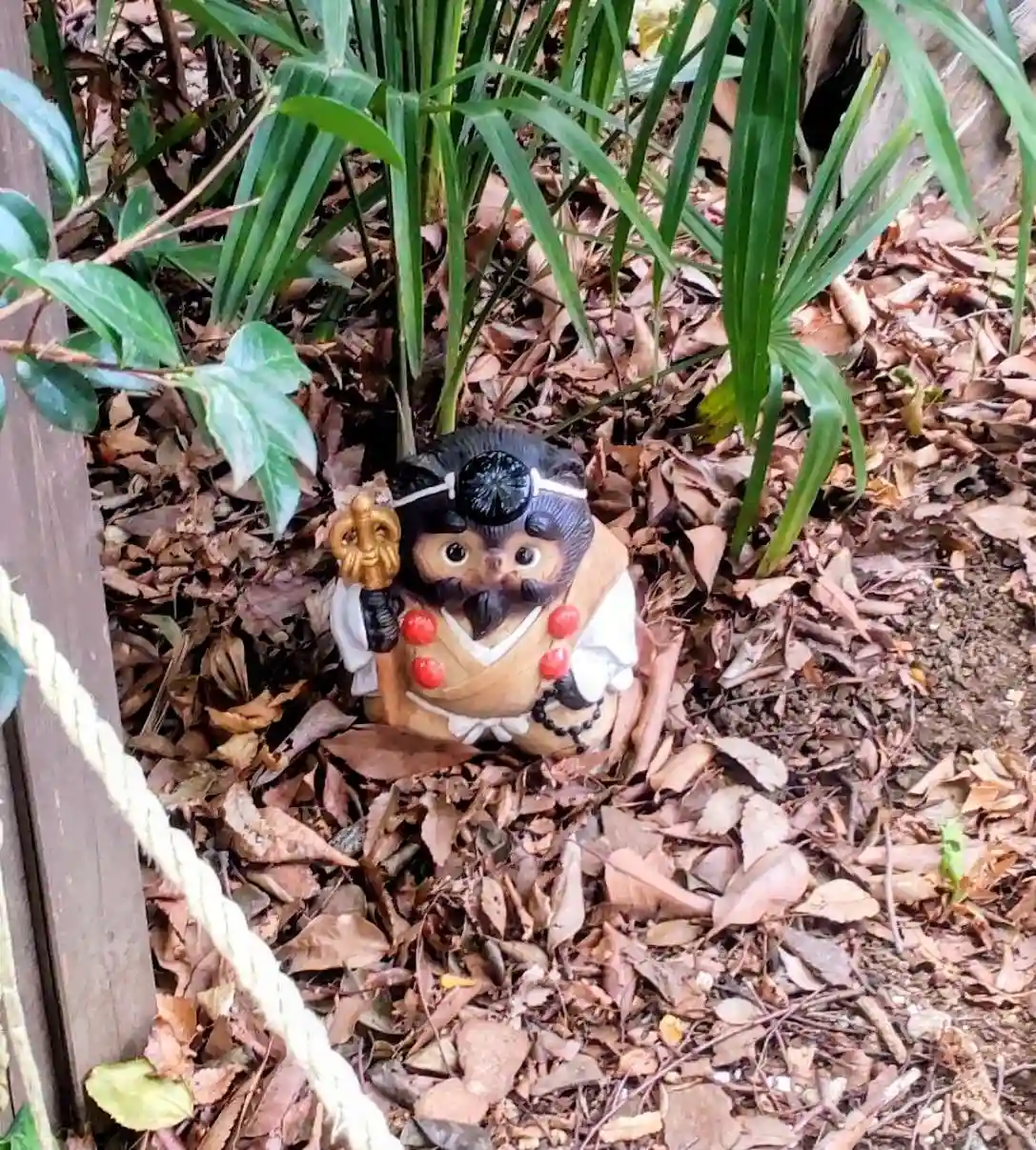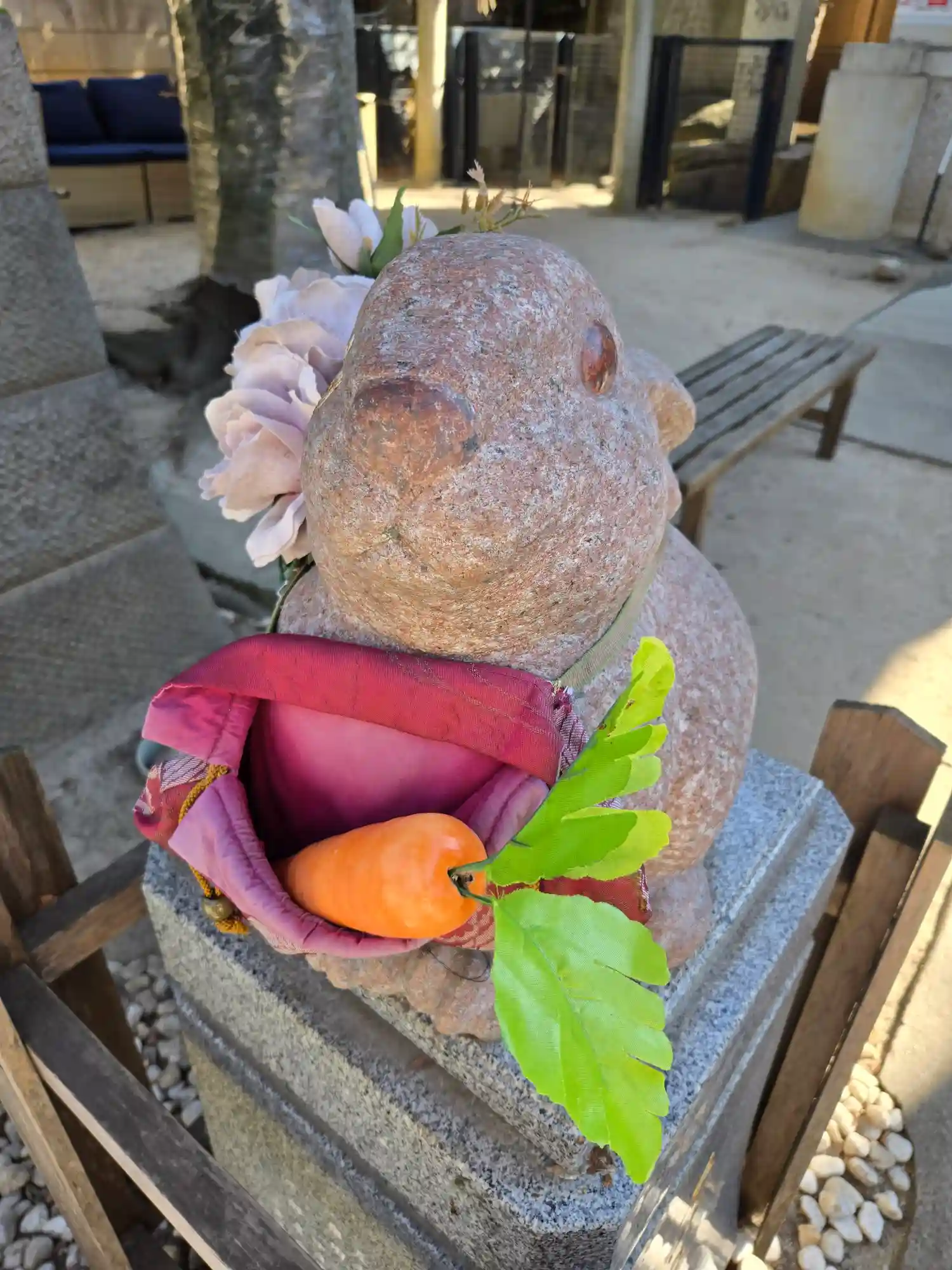 この日は快晴で20度超えだったのに、昼下がりに雨が降りました。憩いの場となっているソファのクッションをあわてて神楽殿に放り込んだようです。