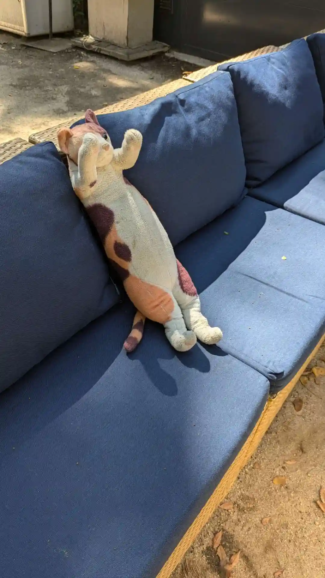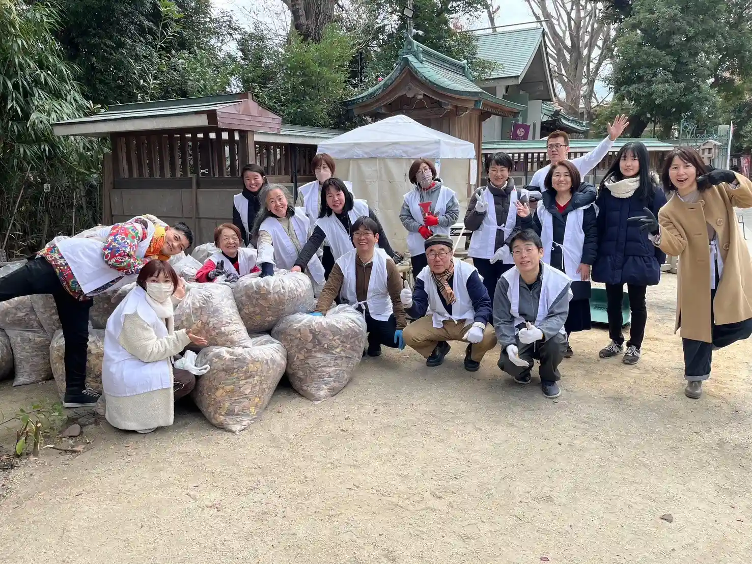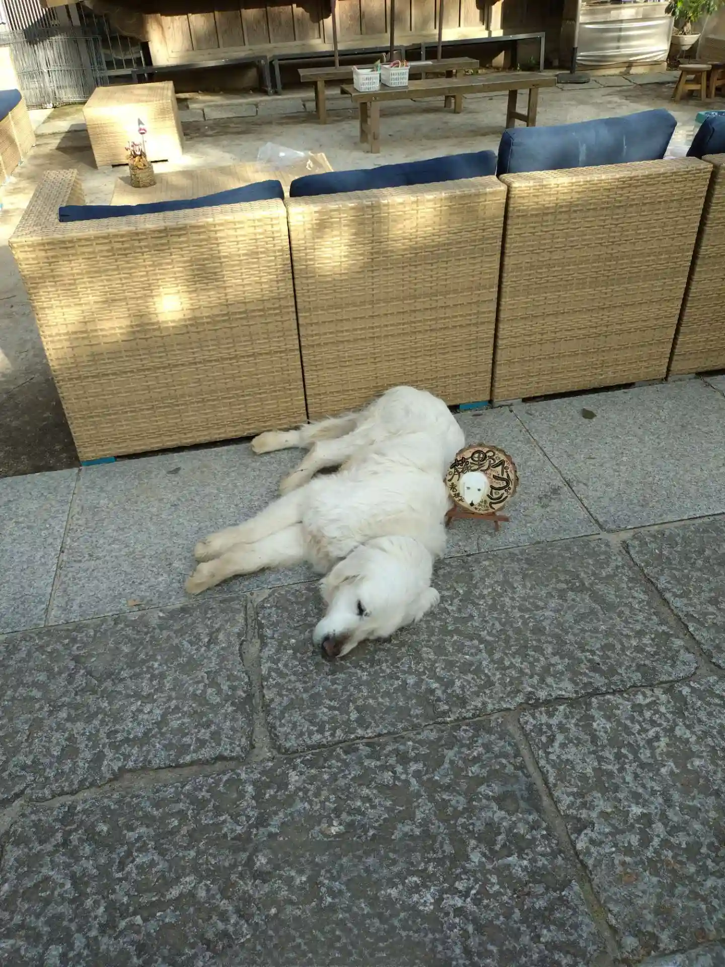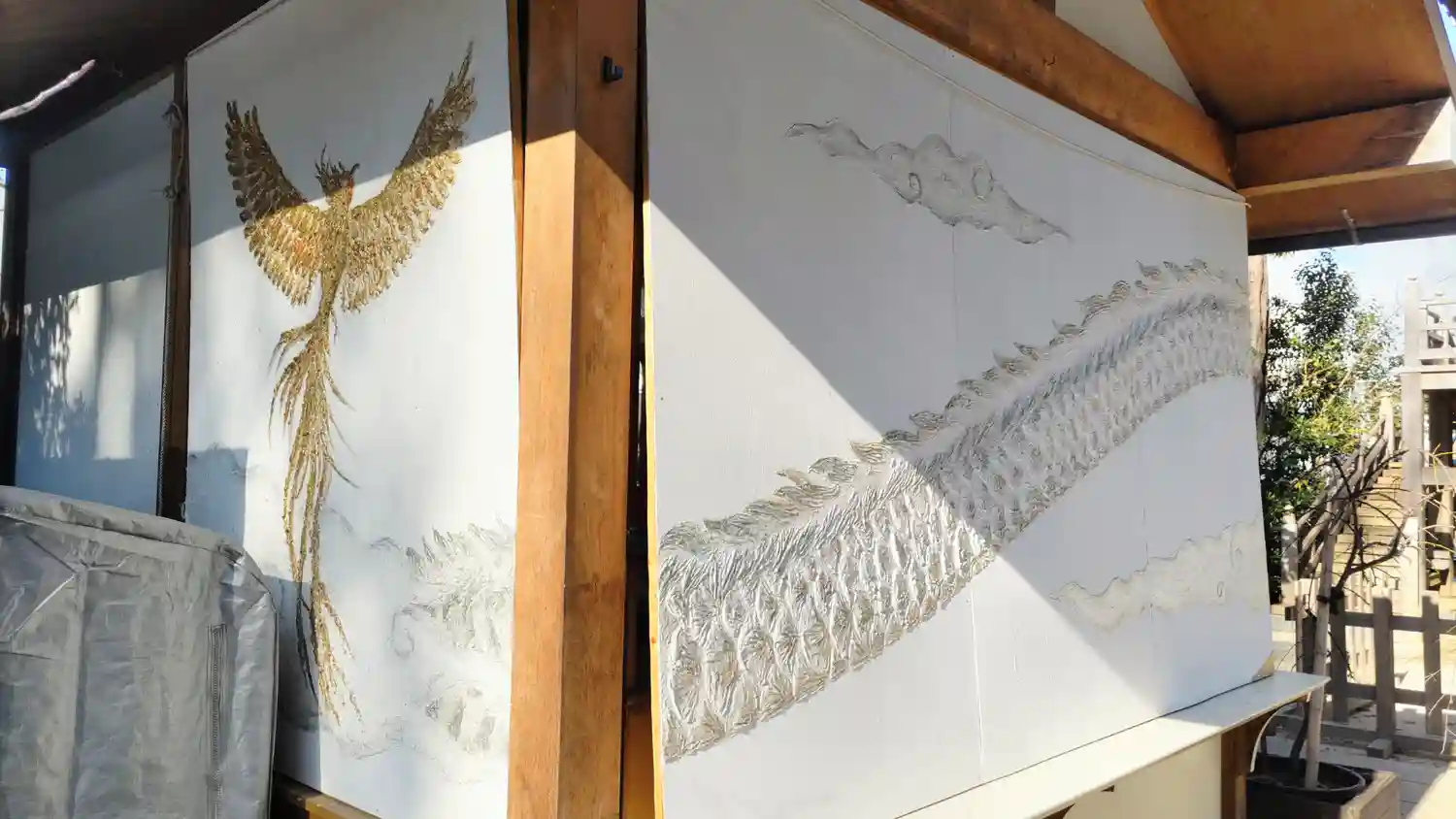 この日は快晴で20度超えだったのに、昼下がりに雨が降りました。憩いの場となっているソファのクッションをあわてて神楽殿に放り込んだようです。