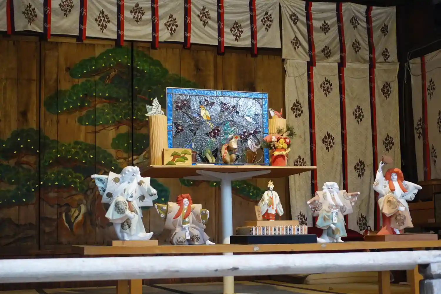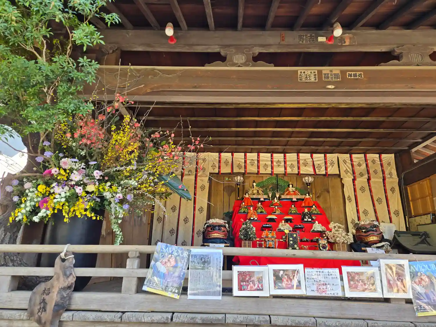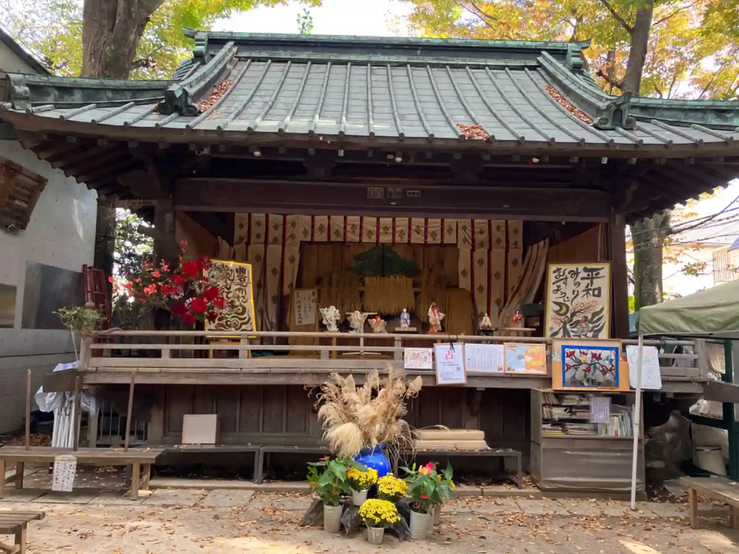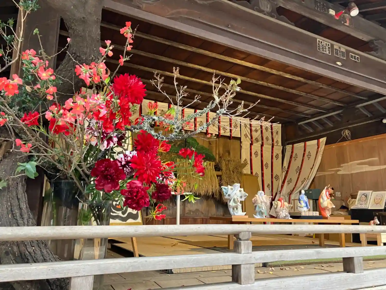 神楽殿が花枝で飾られていました。
