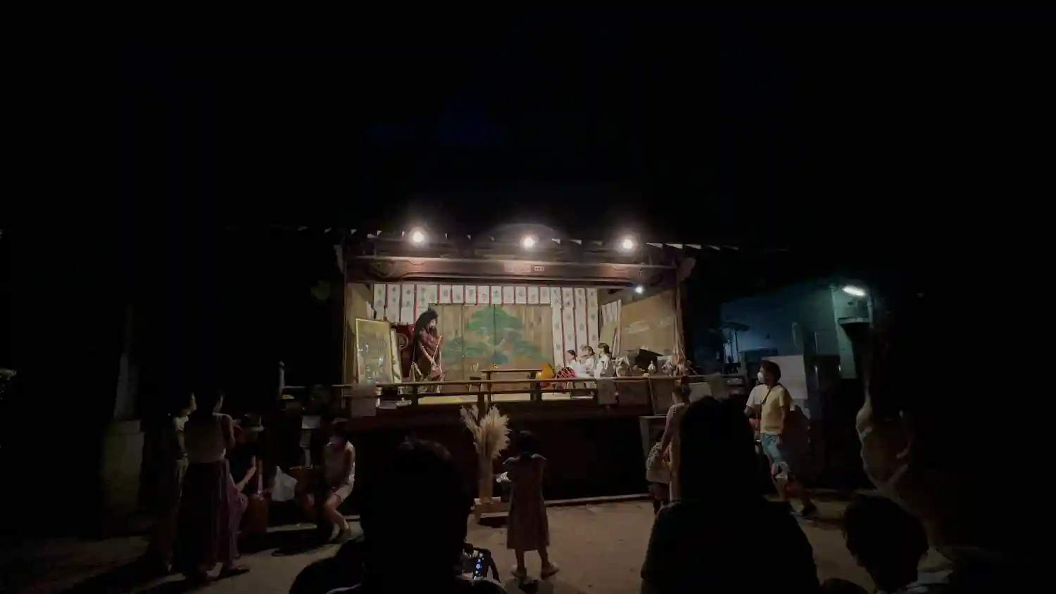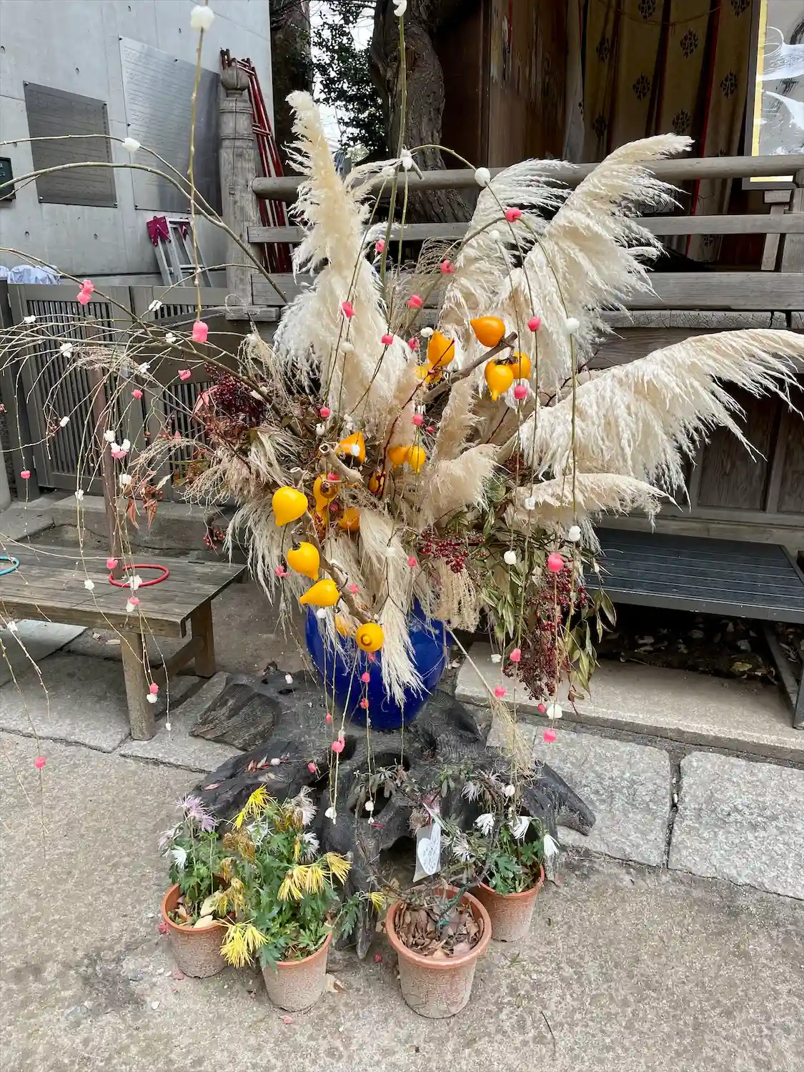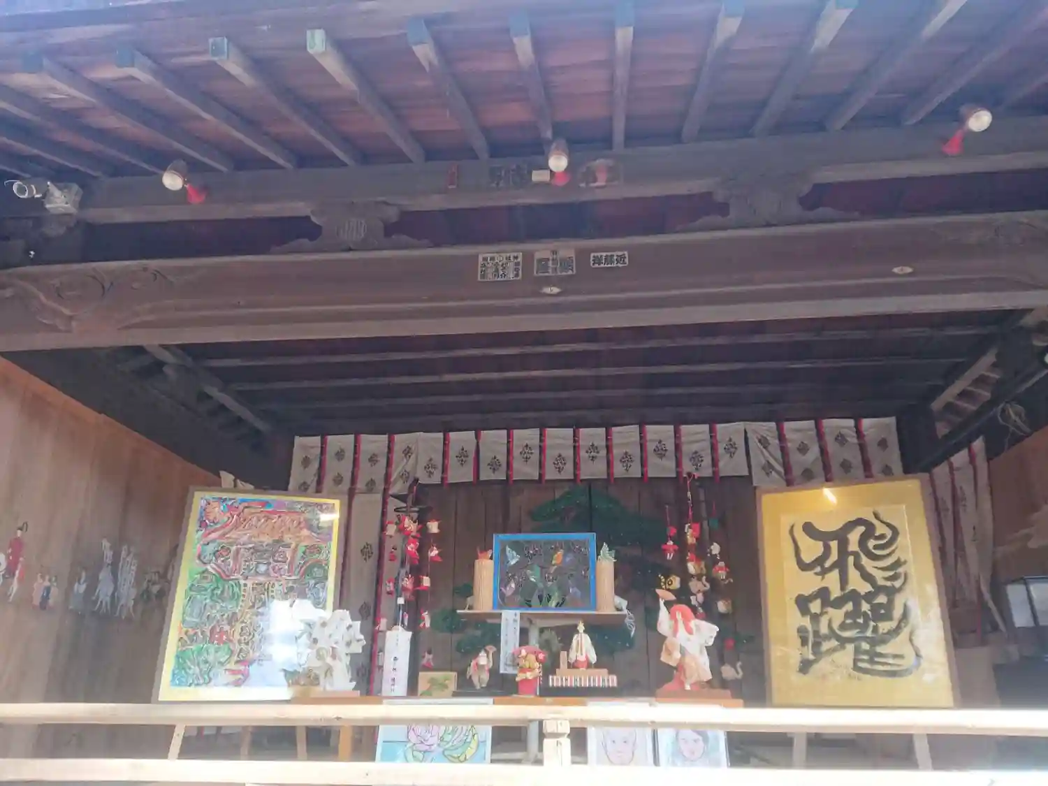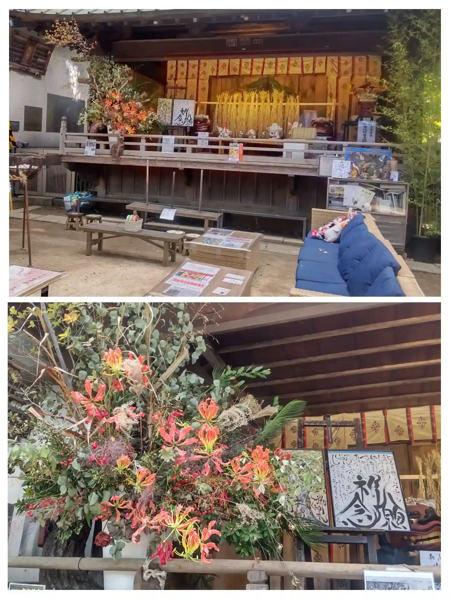 神楽殿が花枝で飾られていました。