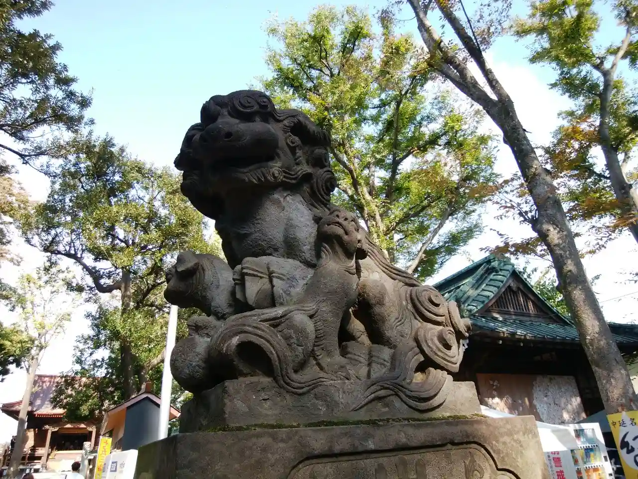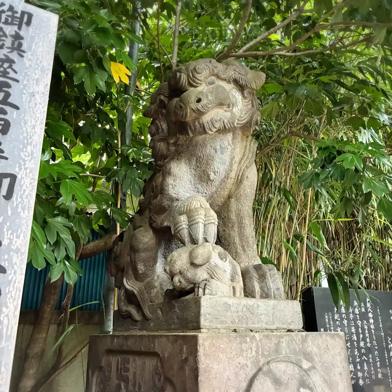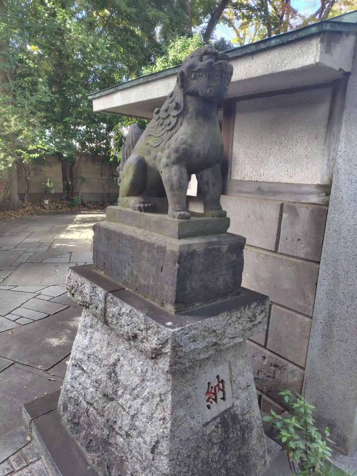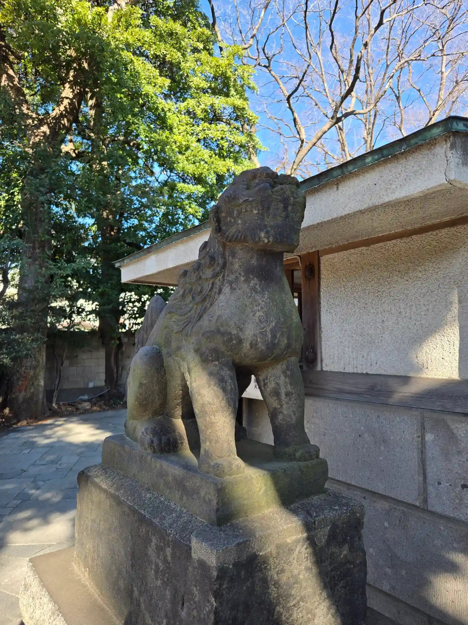向かって左手が阿の狛犬様。遠くから見るとなまずのように見えます。